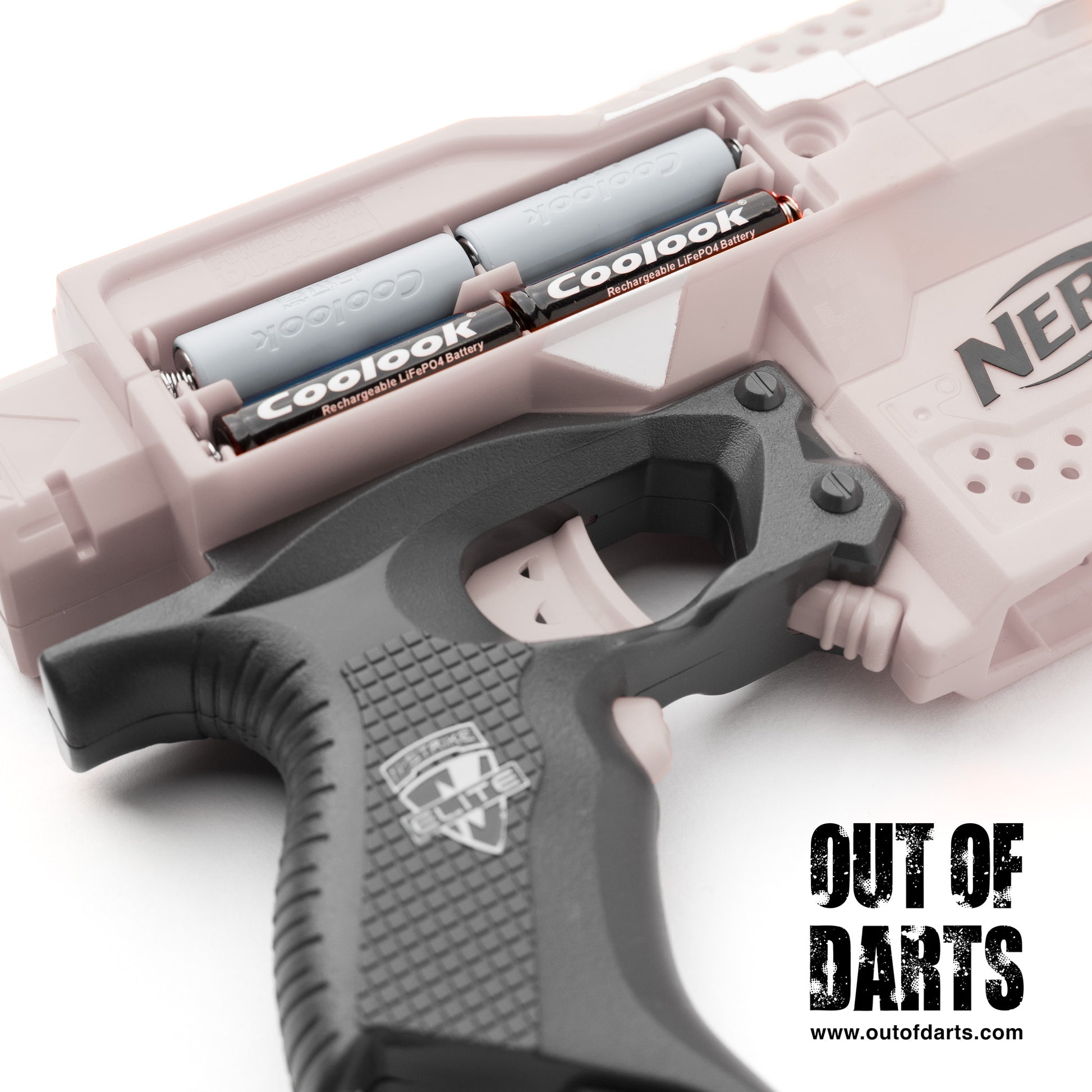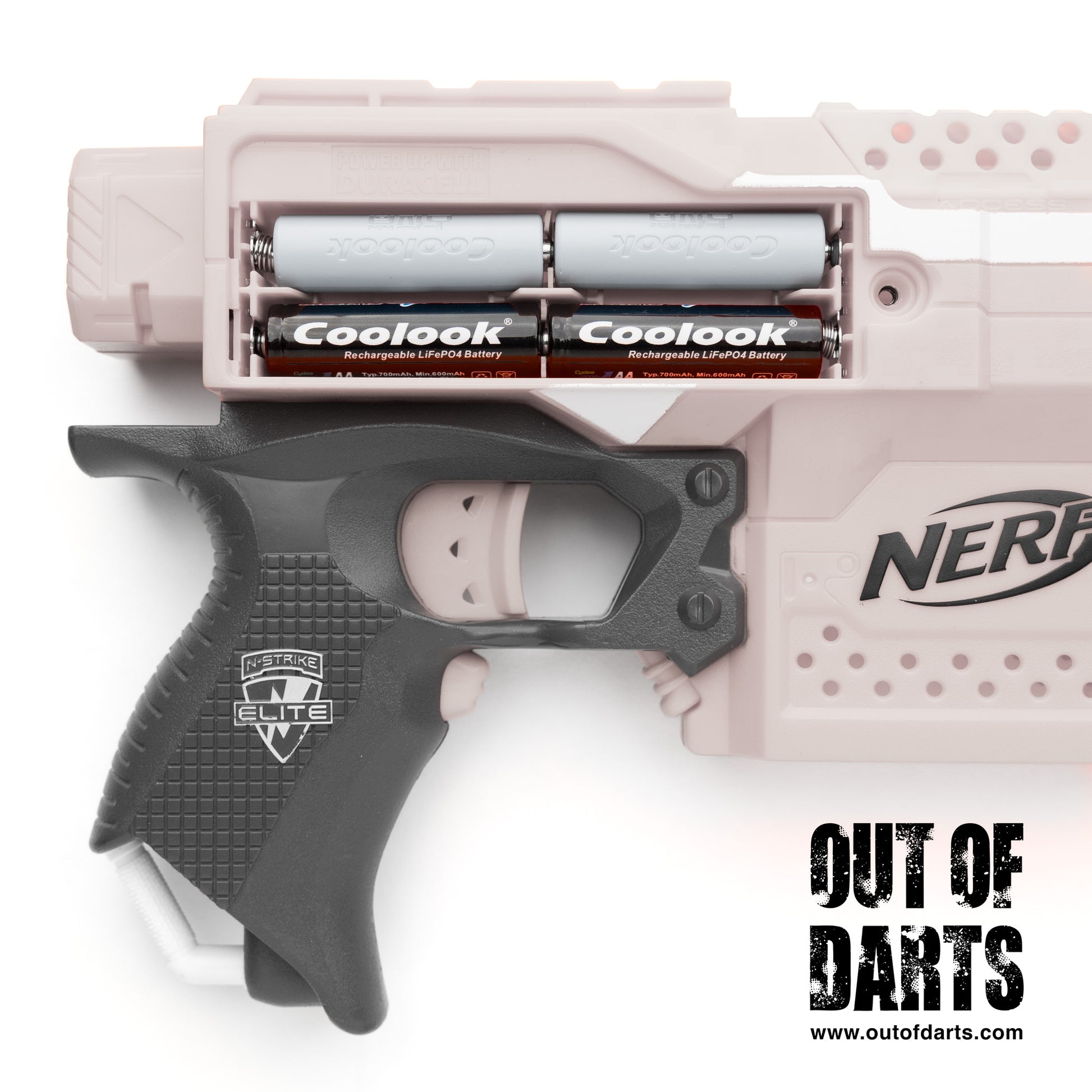 • Compatible with stock blasters, like the OG Stryfe, with dummy cells