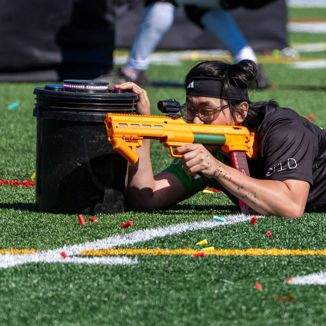 While all these game types involve tagging out a player with a blaster (they wouldn’t be blaster tag sports if they didn’t), merely tagging out every other opponent is not the only way to win; each format relies on an additional objective to keep players from turtling behind cover and running out the clock. Not only do these objectives make games more engaging and dynamic for hobbyists to play, but it also makes them much more fun to watch, and spectating is the best way for others to find out about this hobby and its competitive scene!