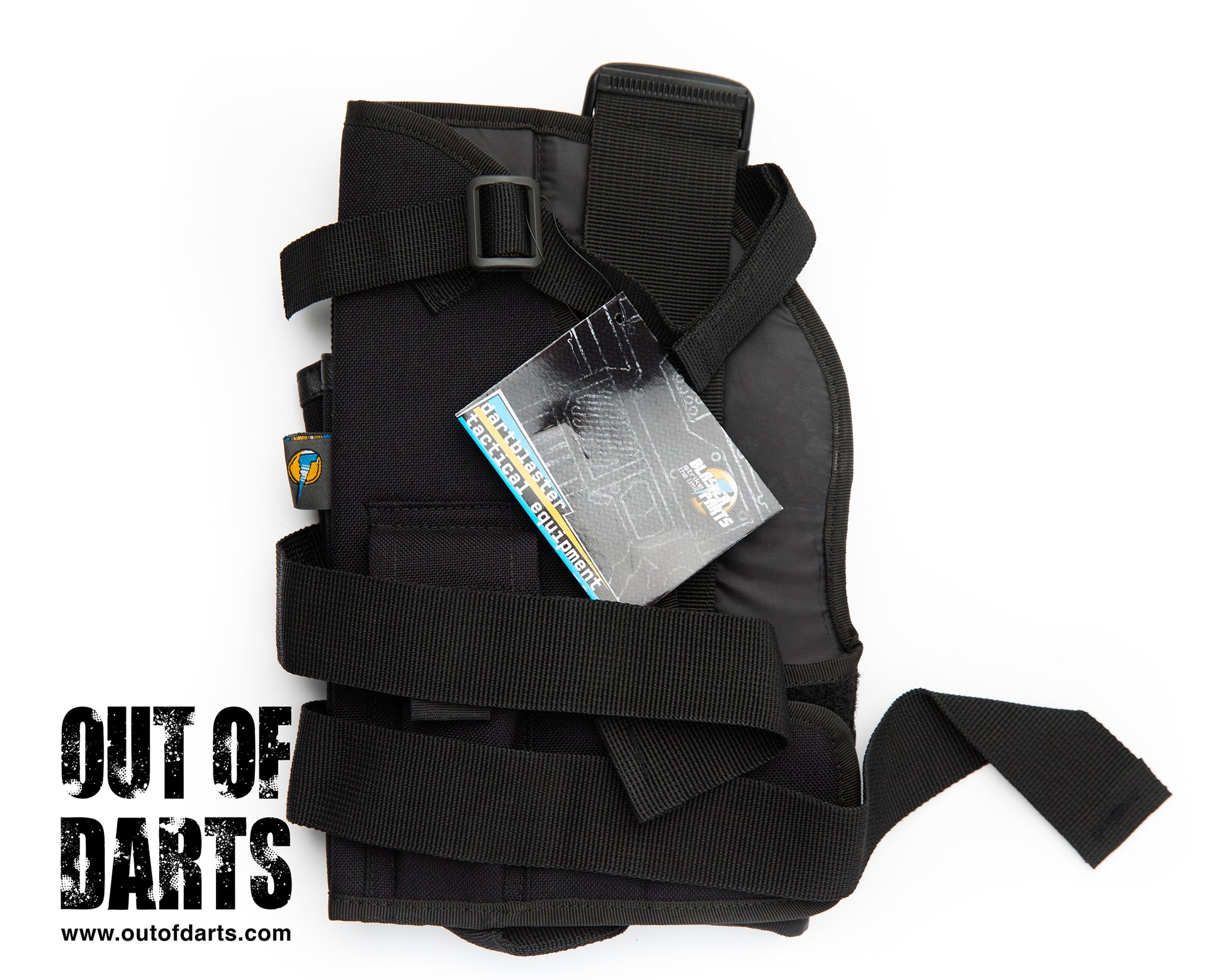 This holster holds variety of medium-sized "secondary" blasters -- it fits securely to your belt with the two leg straps it ain't going anywhere. I tested a strongarm, split-strike, magnus, kronos, cycloneshock, trailblazer 2.0, hammershot, and even the rough-cut. It's not a "perfect" fit but it's good enough for 95% of people in the hobby.
