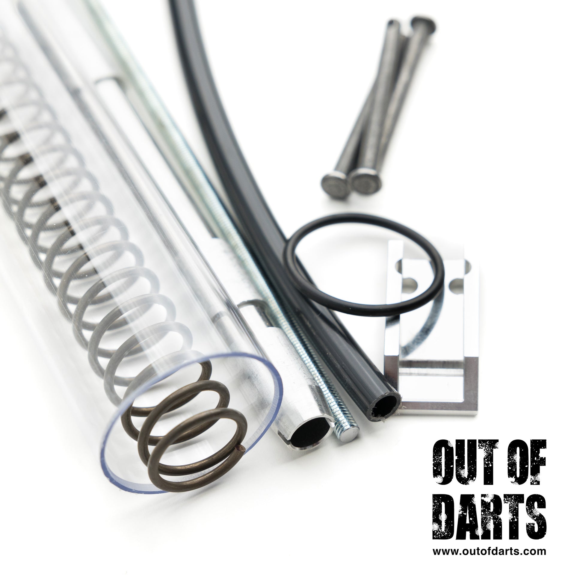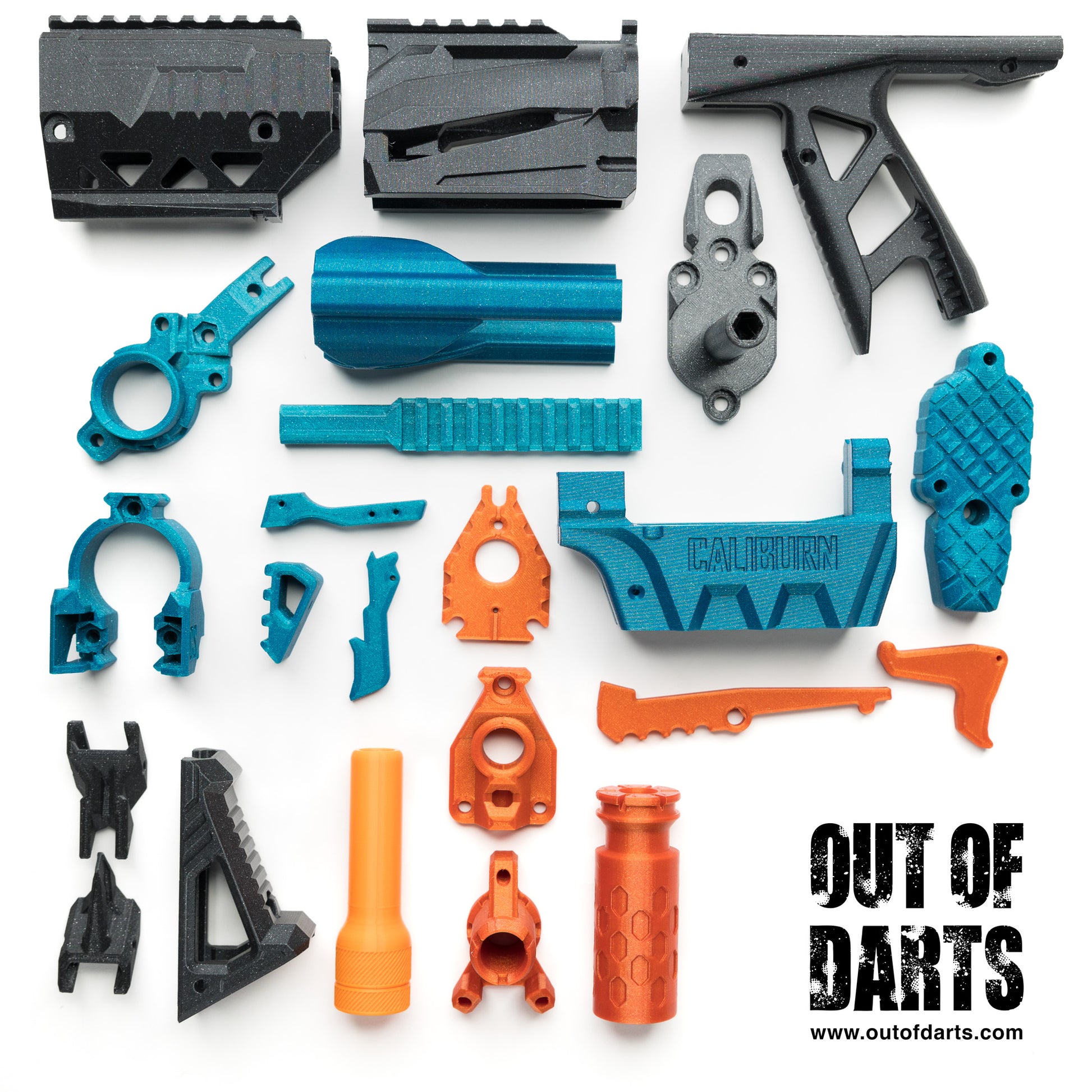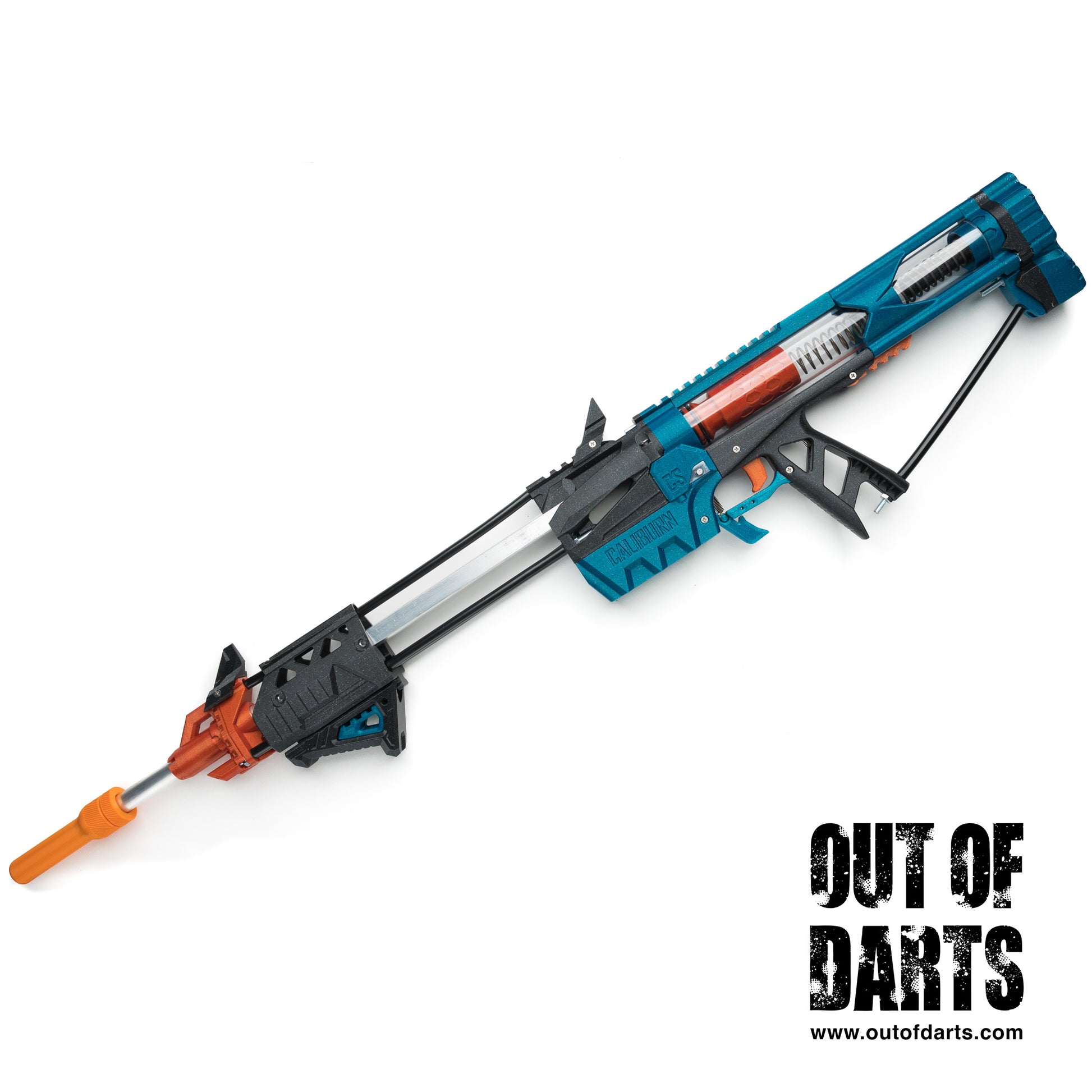 The Elite Caliburn Blaster Kit offers all of the hardware and 3D-printed parts to assemble a Caliburn Blaster. This is a DIY build-it-yourself kit. The Caliburn is compatible with full-length and half-length darts.