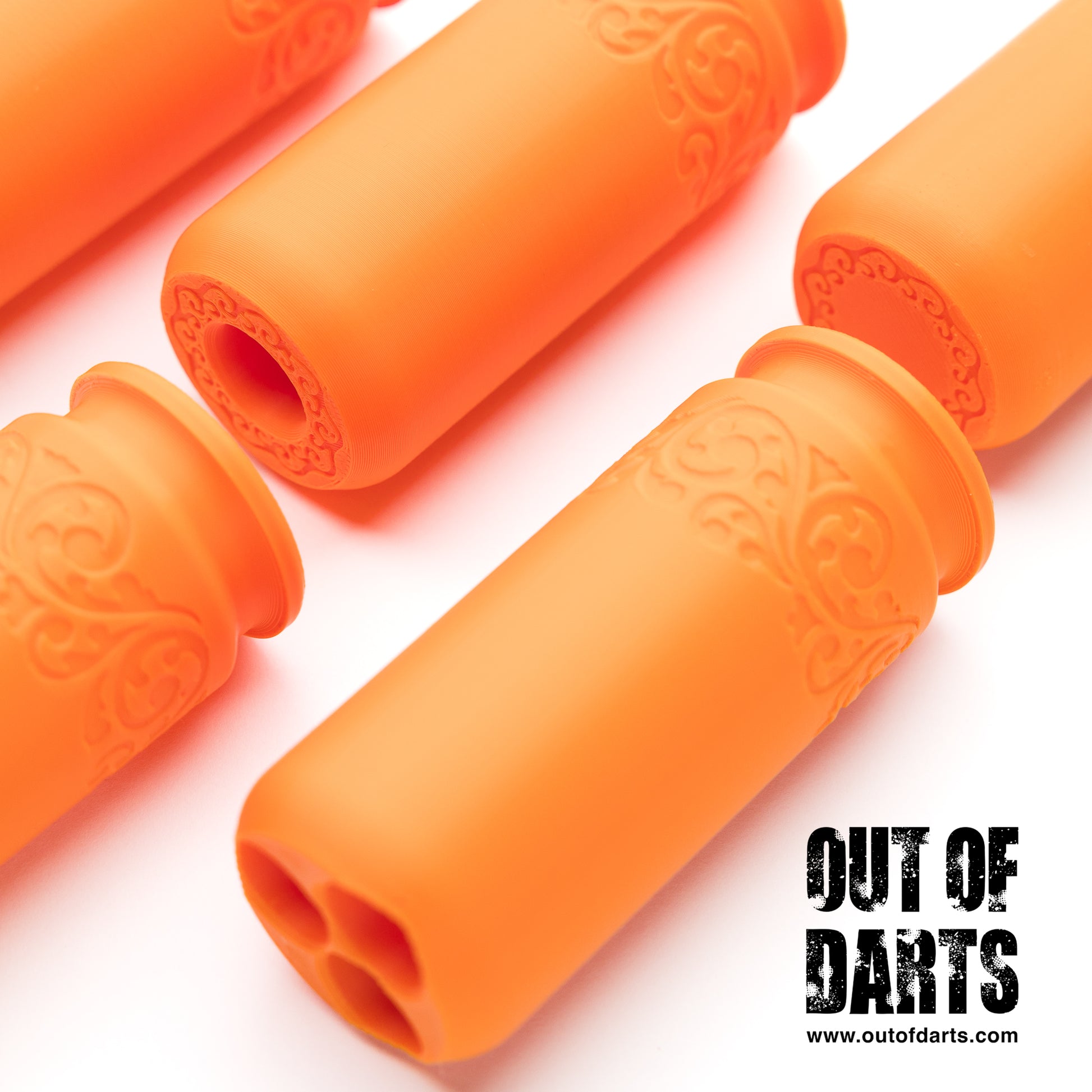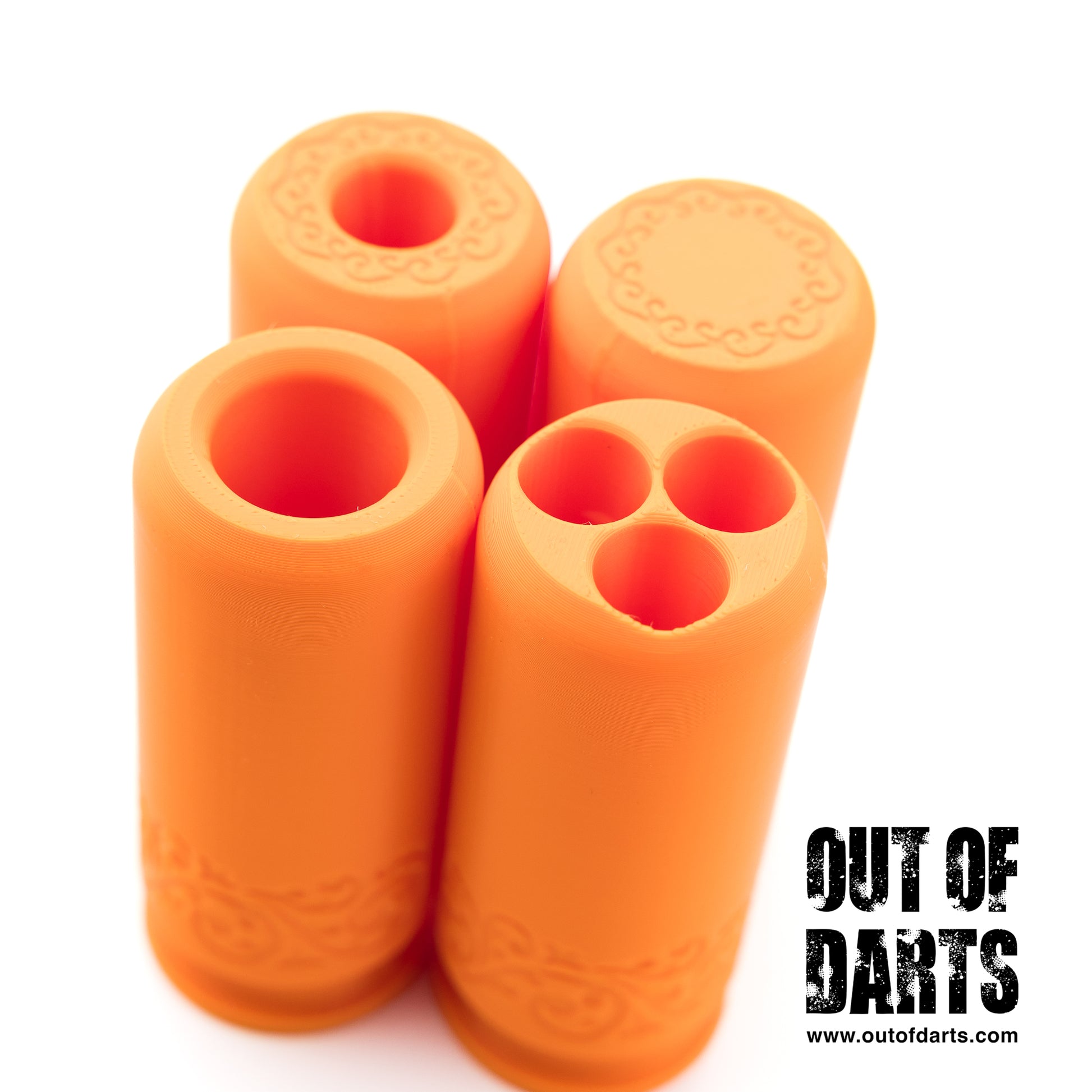 These Stagecoach Shells are customized 3D-printed shells designed to complement the Femling Design Stagecoach Side-By-Side Shotgun Blaster. Featuring decorative filigree-style scrollwork on the outside, these shells complete the loadout aesthetic. Additionally, these shells are compatible with select silly Shell-fed blasters, including the Breacher.