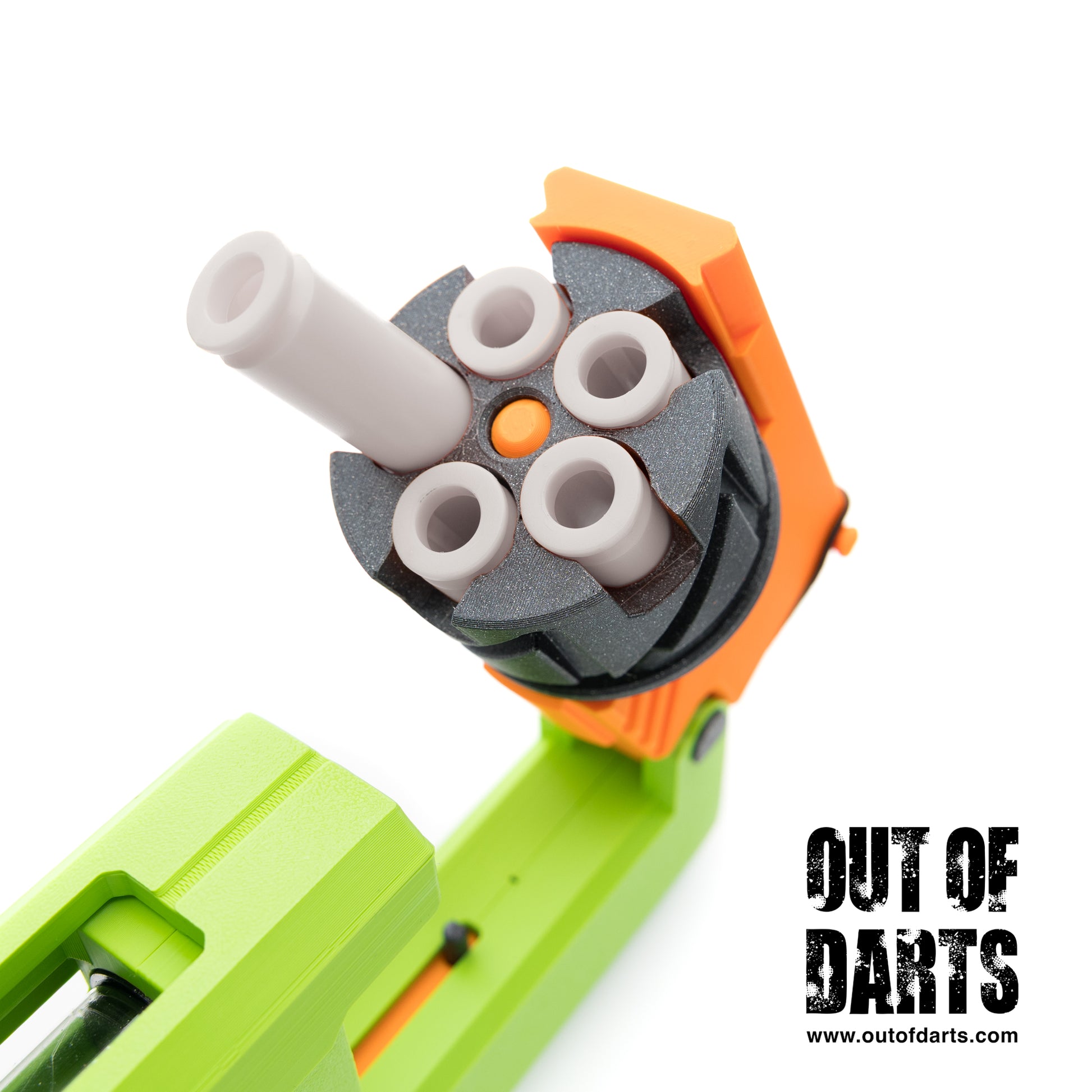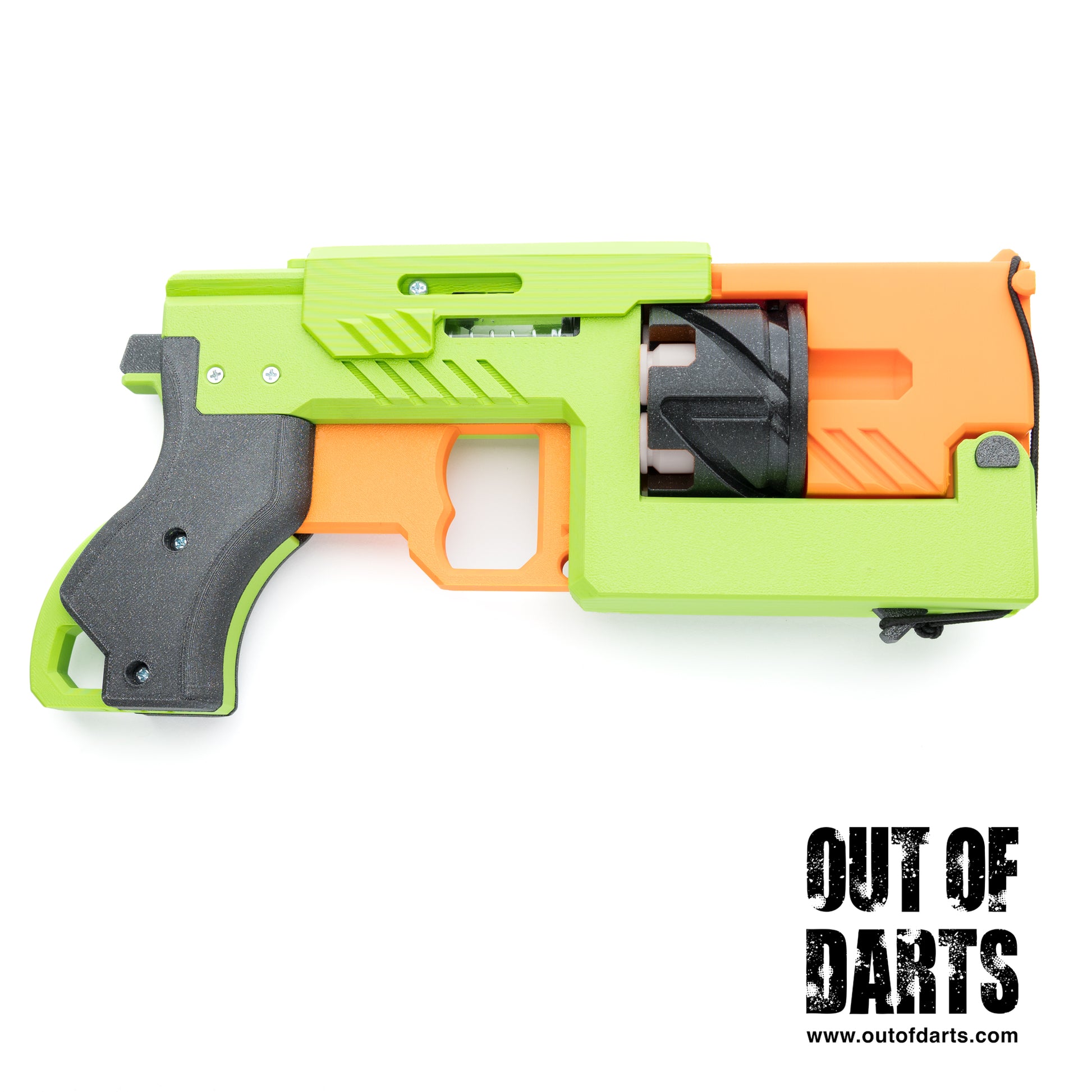 The GenCo Megawerks Ticket Punch is a double-action springer revolver designed by Domochevsky. Originally, a hardware conversion of his popular "X-Shot Micro Reshells," this blaster is designed from the ground up to be easy to print and assemble with our readily available hardware. Additionally, this blaster uses Flypoint or Kirin shells and a quick-loader to easily reload the cylinder with the turn of a knob.