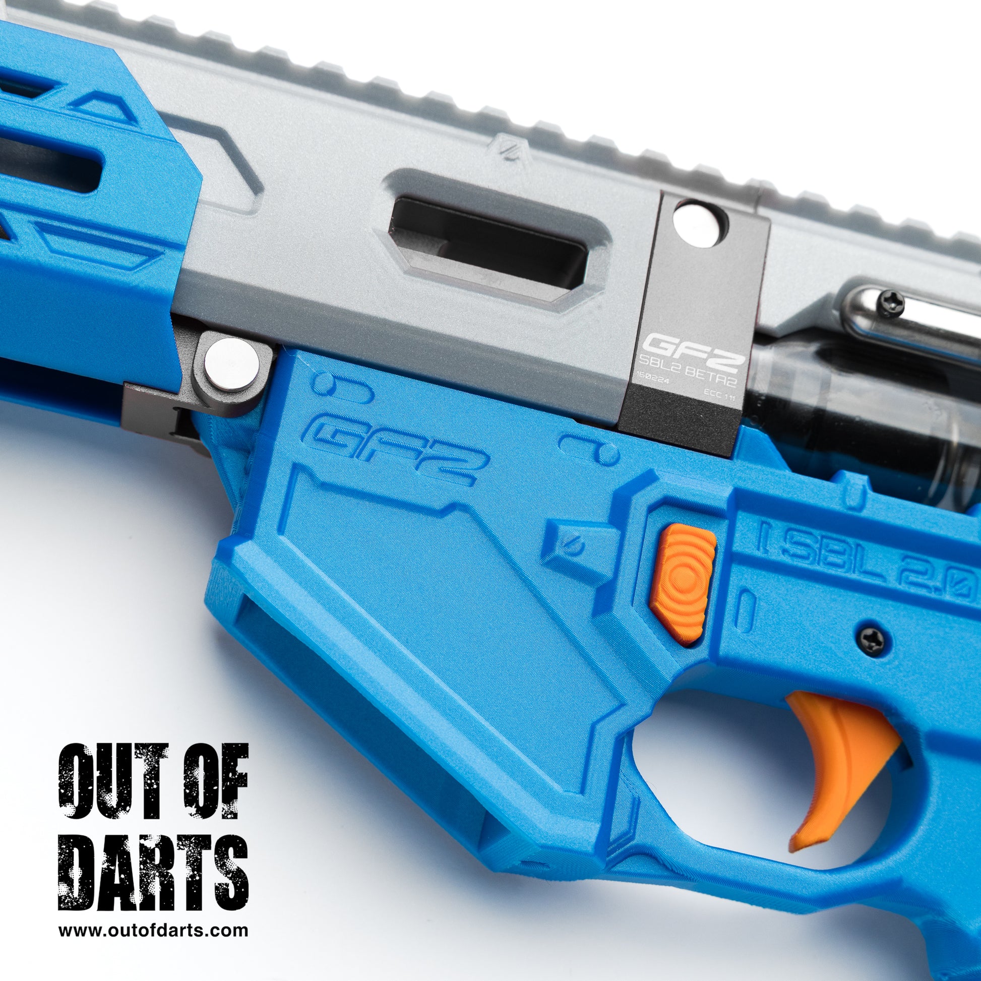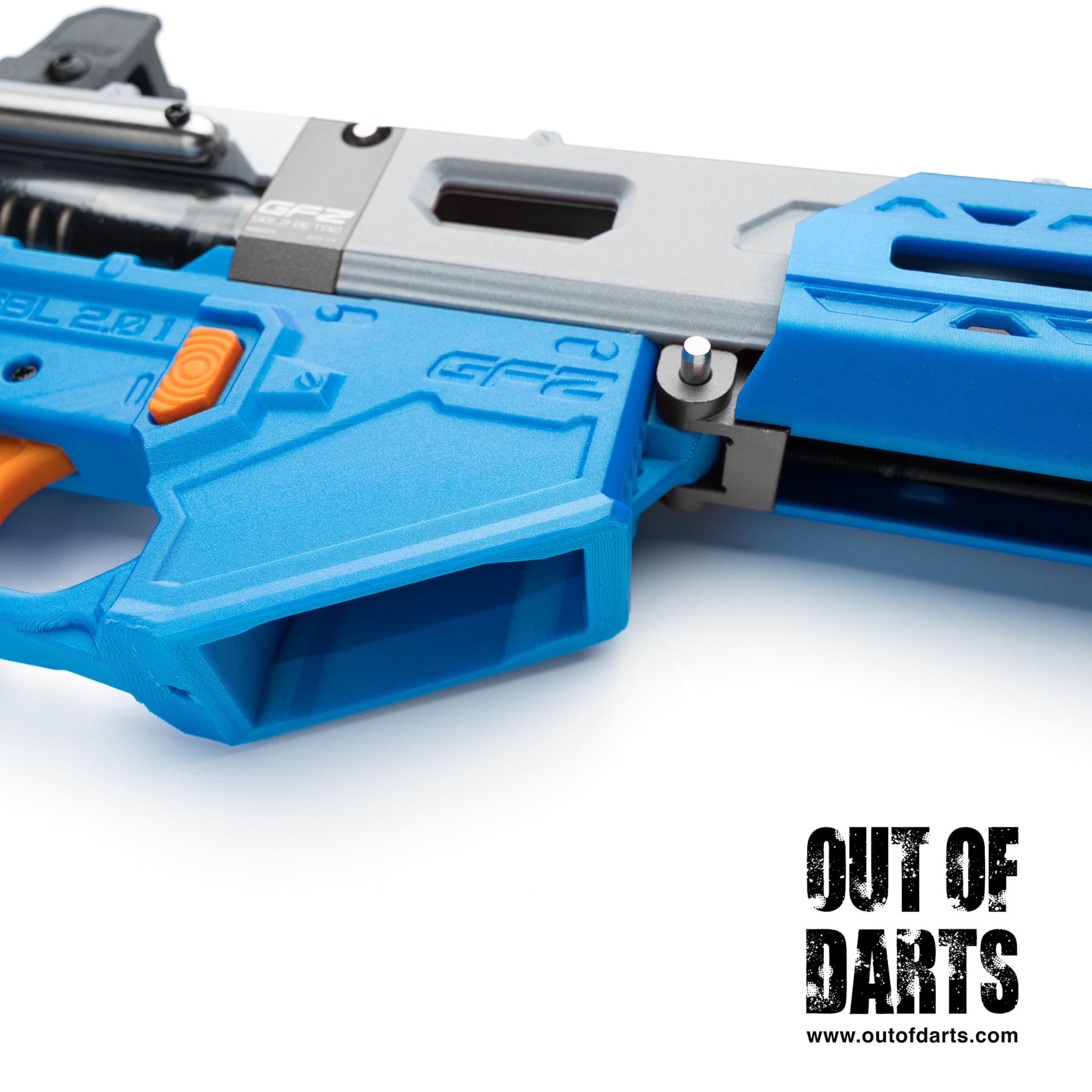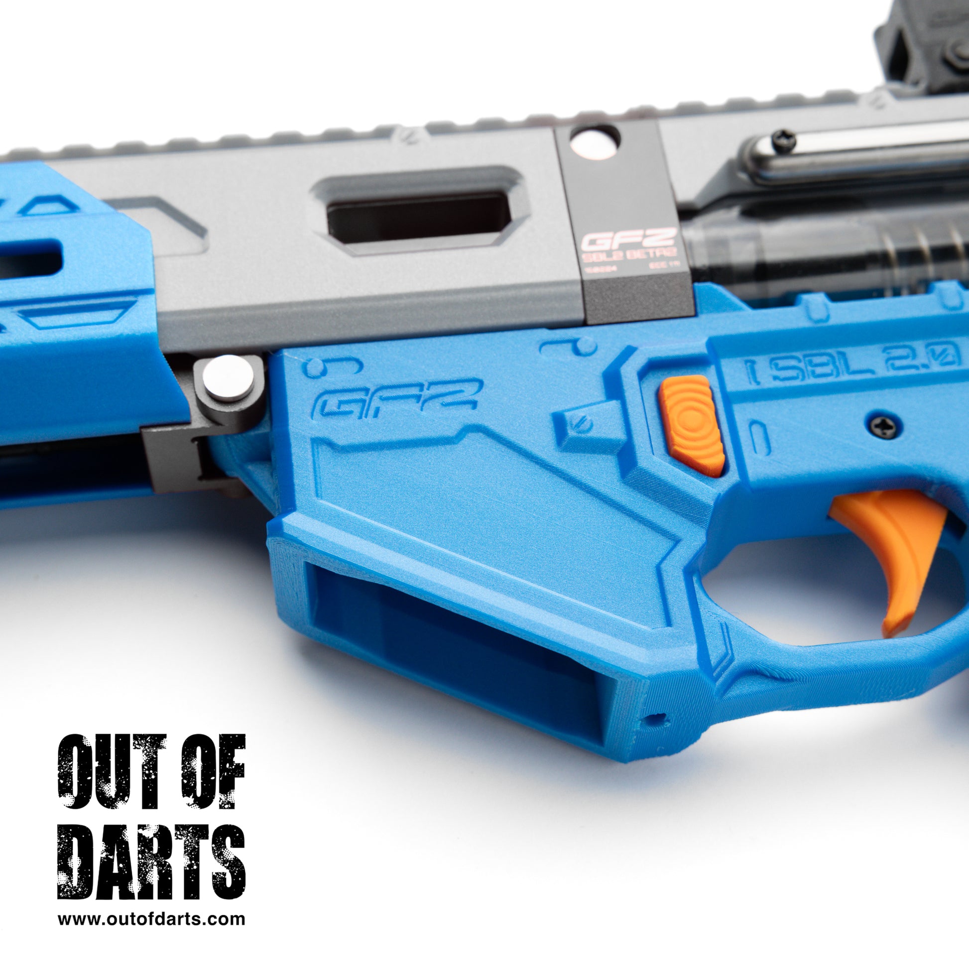 The GFZ SBL 2.0 is a 3D-printed springer designed and produced by Gavin Fuzzy Customs. Featuring five color-coded springs and a two-pin toolless takedown system, this versatile and durable blaster can be quickly tuned to virtually any FPS. Its solid-feeling construction and short, smooth prime stroke make it a joy to operate. Additionally, its sleek, compact design, accented by colorful anodized internals, makes it a capable and stylish primary option for competitive and close-quarters battle games.