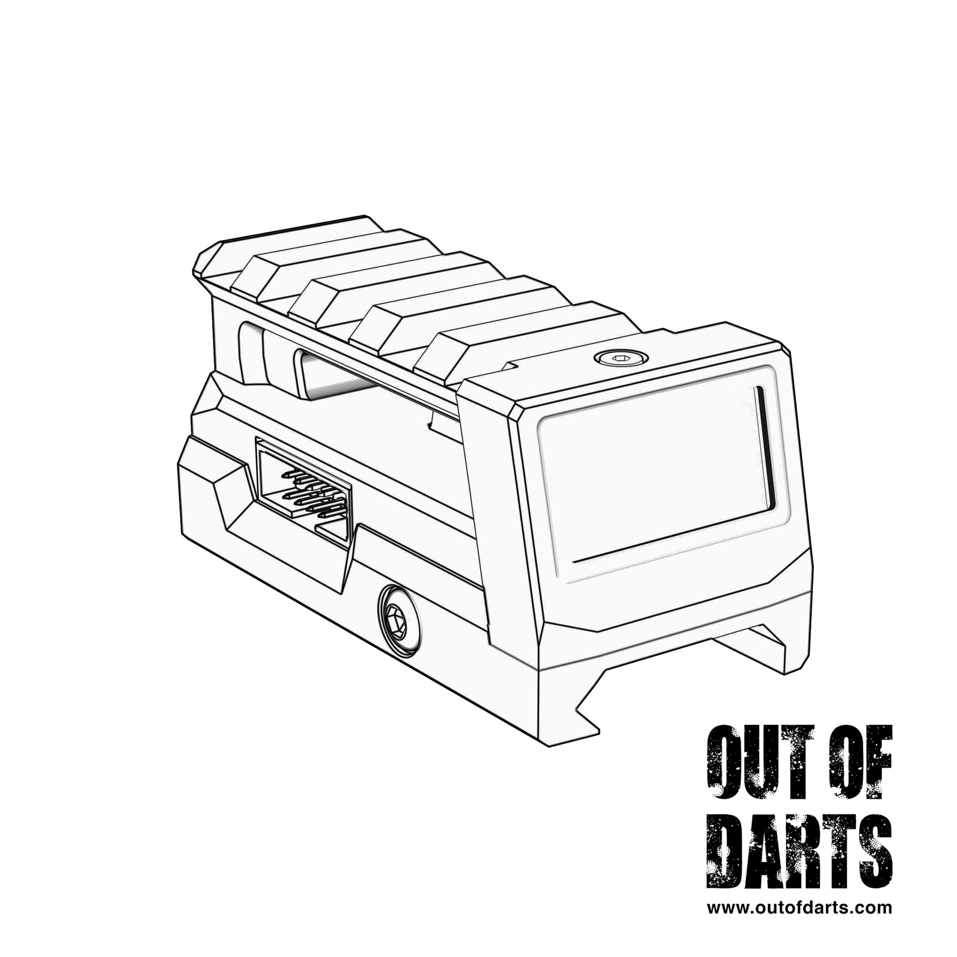 The Hare Tech Vesper Smart Display Riser is a premium electronic accessory for the Vesper Brushless Flywheel Blaster. Featuring a high-contrast LCD heads-up display (HUD), all relevant blaster status information is clear and easy to read. With a simple menu navigation toggle, this attachment also unlocks more granular customization options for the blaster’s performance, fire mode, and other settings. Additionally, there’s a Picatinny rail riser behind the display, providing an unobstructed sight picture for any red dot or other optic. Available in stationary and foldable versions.