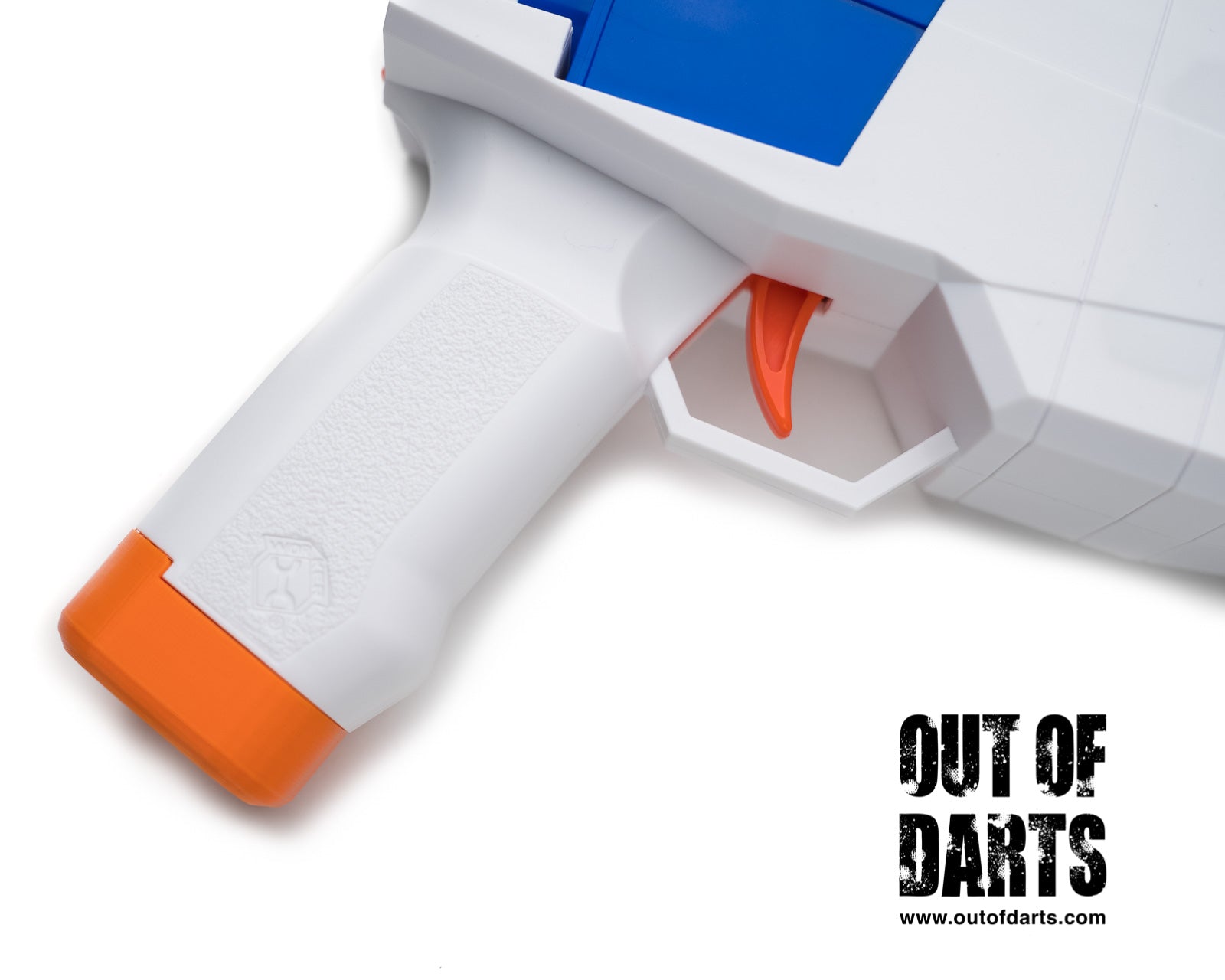 This is a grip extension for the Worker Hurricane. This Hurricane Grip Extension V2.0 allows for larger hands to hold the blaster more comfortably. It also makes enough room for the mini voltage alarm.