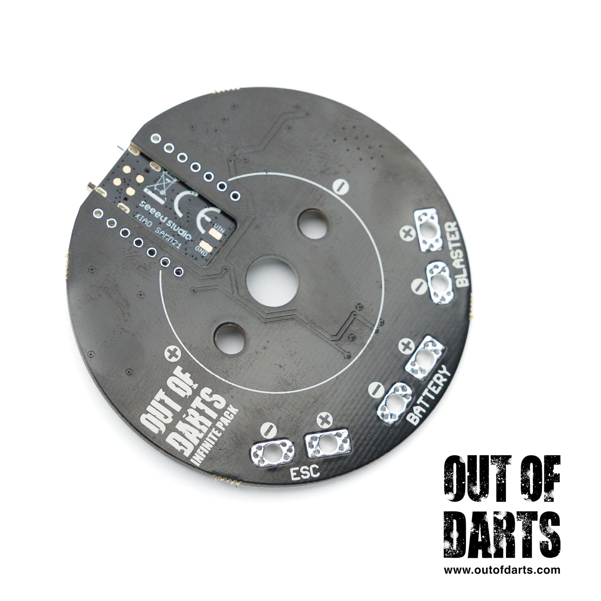 The OOD Infinite Pack Board (Version 2.0) is a redesigned update of the original printed circuit board included in the release of the OOD Infinite Pack Rival Hopper Feeding System. Featuring large solder pads to accept 14AWG wire and no potentiometers, this PCBis ready to install and use without required tuning. Additionally, its Arduino-based architecture and USB-C input allows for flashing updated firmware or tinkering with the code for advanced users.
