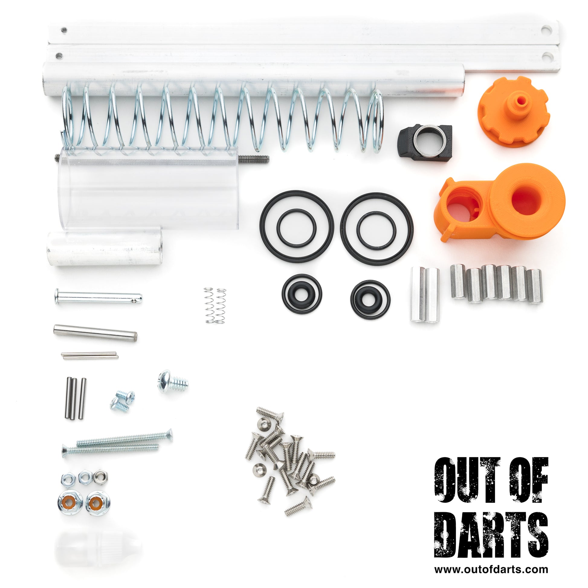 This BETA version of the hardware kit includes everything you need to print the 3D parts and assemble this blaster yourself (3D files available below).