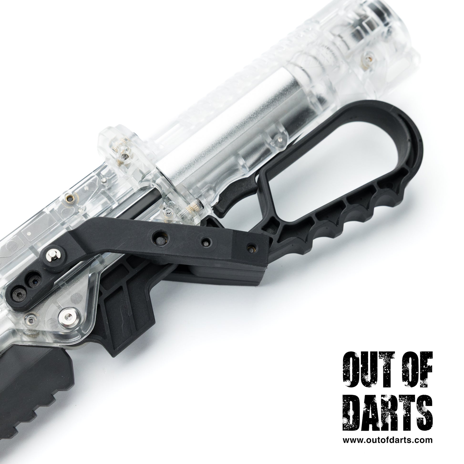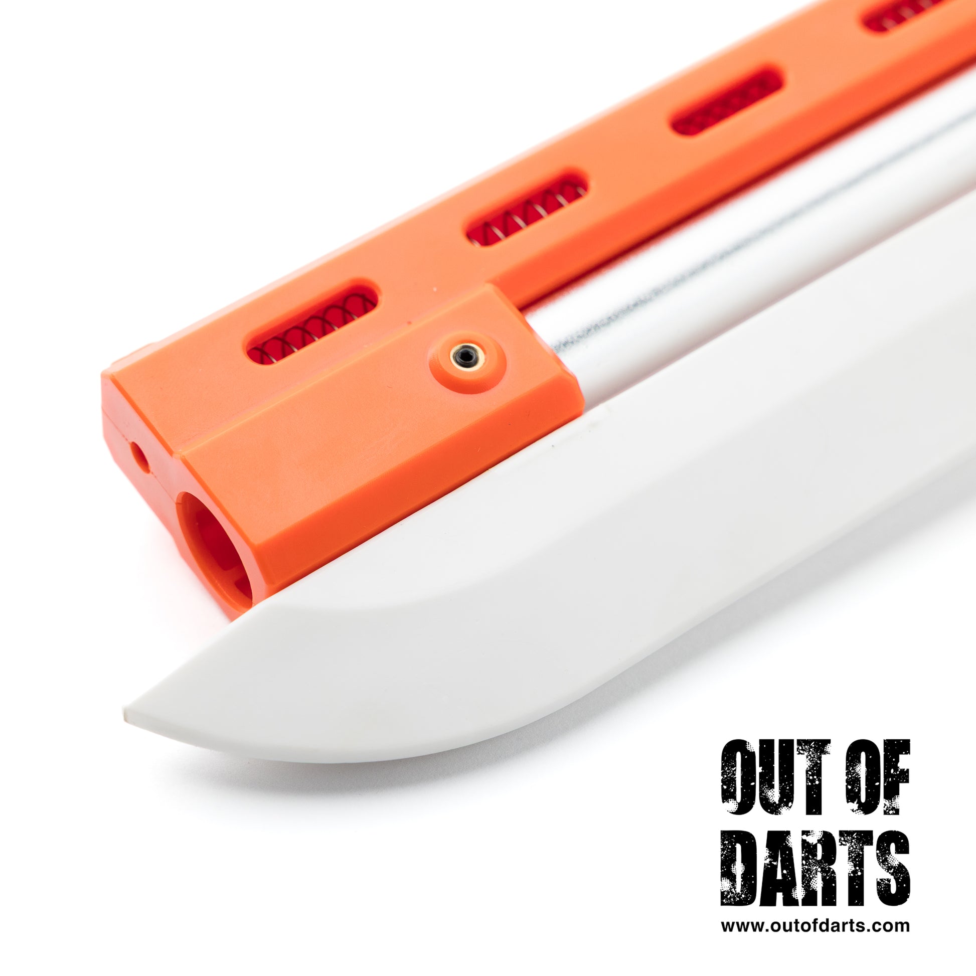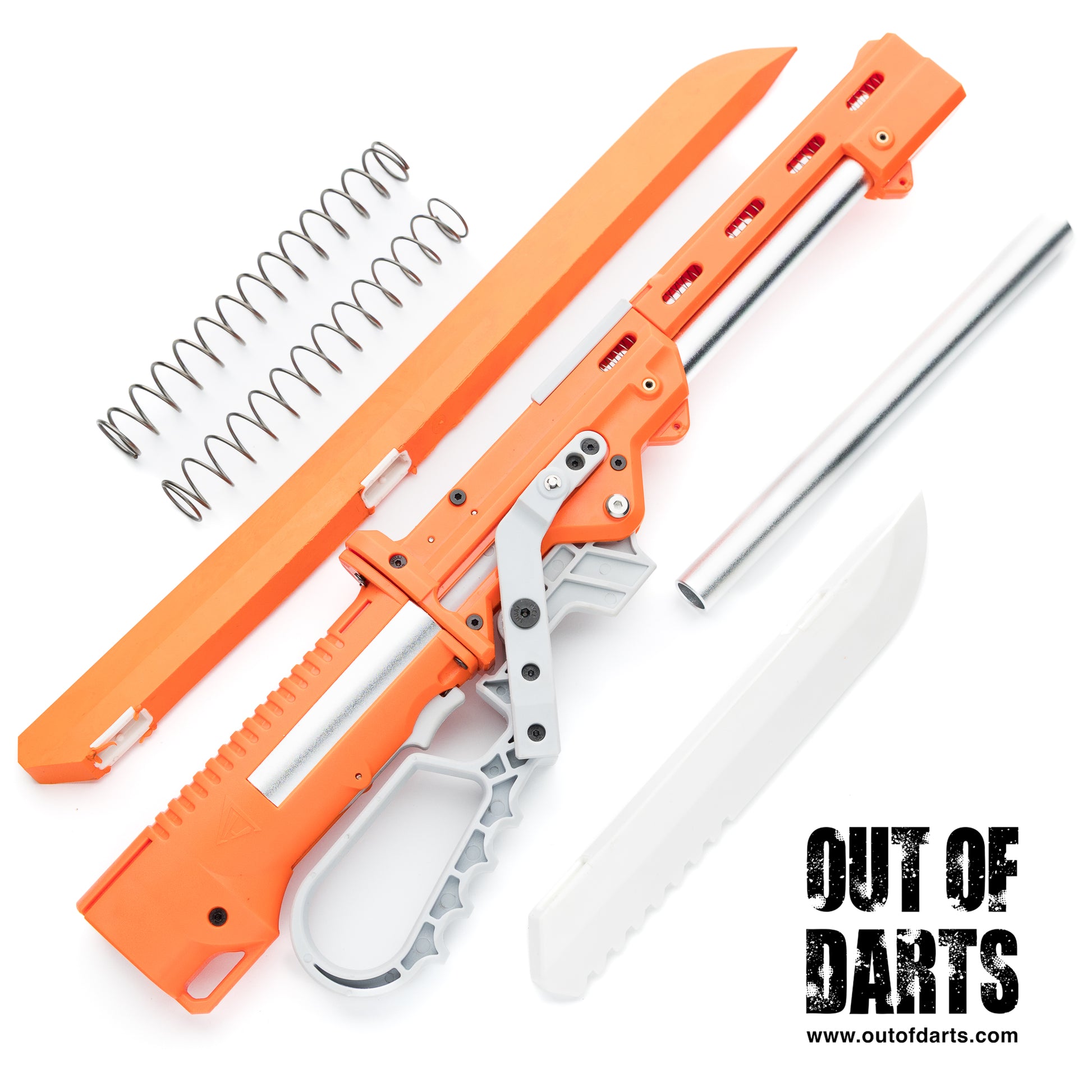 The Shanye + Phantom Tech Mangzhong MZ-01 is an injection-molded Lever-Action Ballistic Knife Blaster designed by Shanye and produced by Phantom Tech. Featuring a large lever prime with a stylized knuckle duster aesthetic, this tube-mag-fed blaster is the ultimate fun to reload and dual-wield tactically. Additionally, its swappable springs and barrels allow it to be tuned to various FPS caps.
