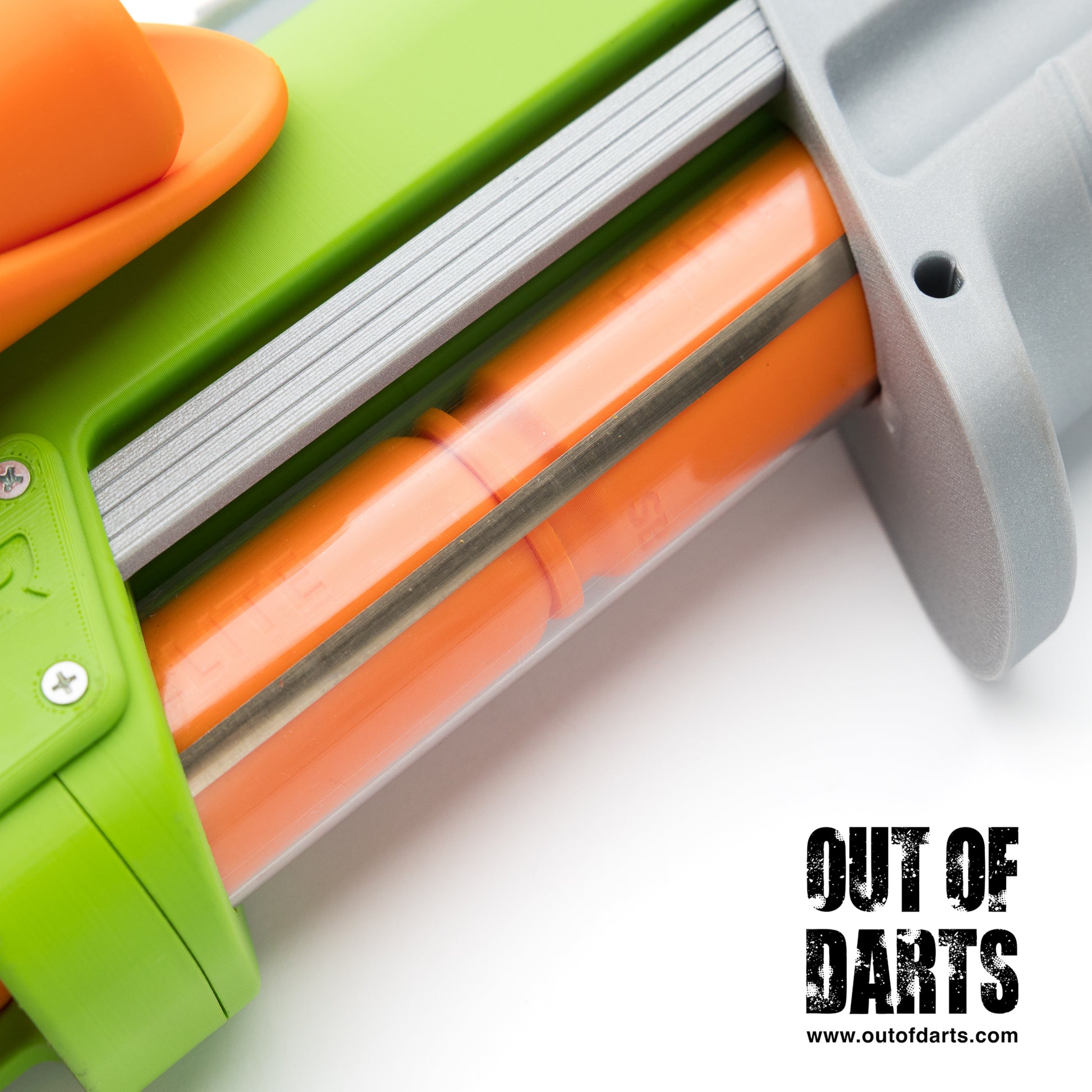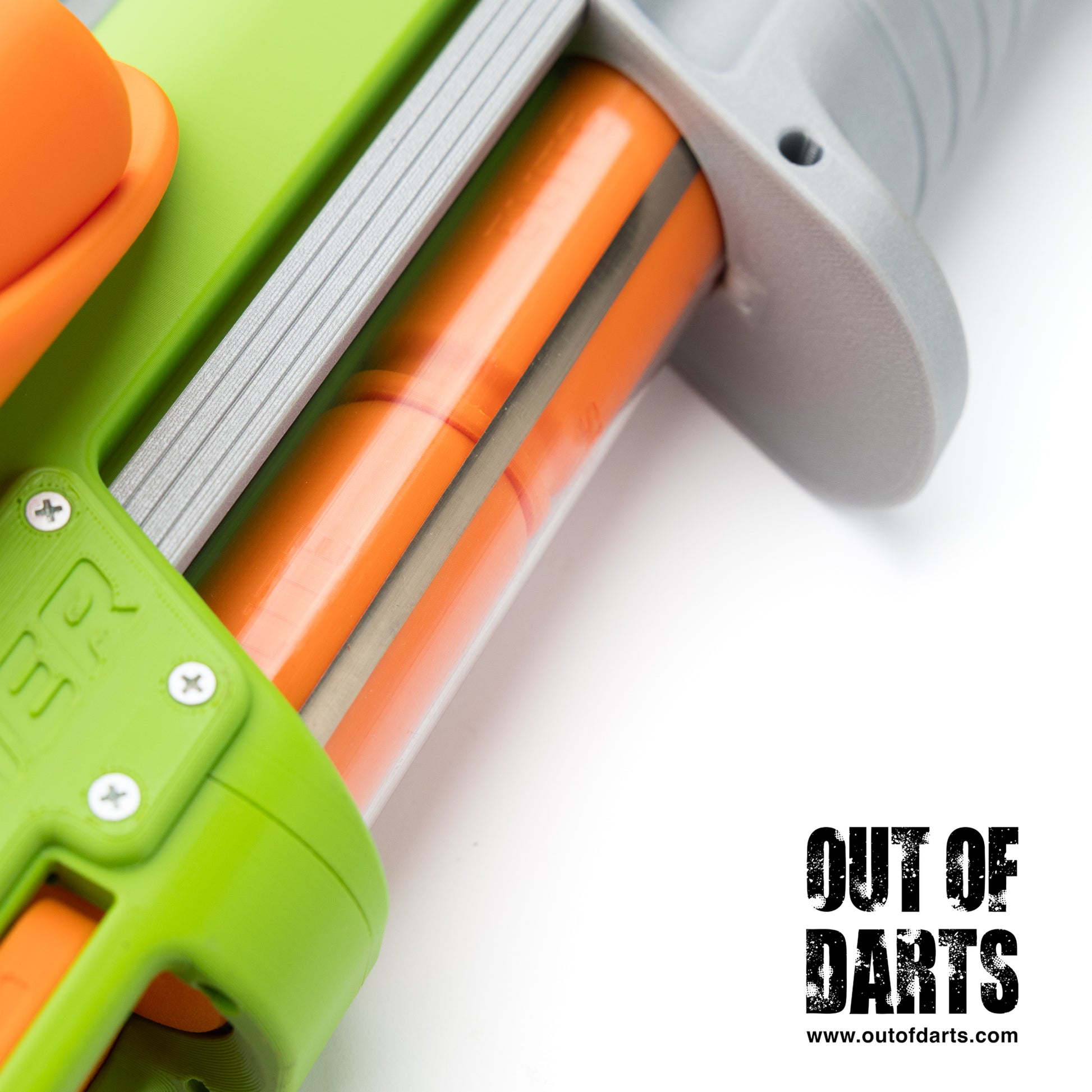 This a really cool blaster! It is big, very strong and works perfectly. I had out of darts build my blaster. I also purchased single dart and triple dart shells. You can fill the shells with full length or half length darts; it doesn't matter - the blaster will send them out in a big spread. I also want to add a big "Thank you" to Out of Darts Customer Service. I had a initial problem with my blaster. After contact and returning the blaster (they paid postage) I was resent the completed blaster which now works great. The whole purchase was handle very pleasantly and professionally. I am completely satisfied with the blaster and Out of Darts!