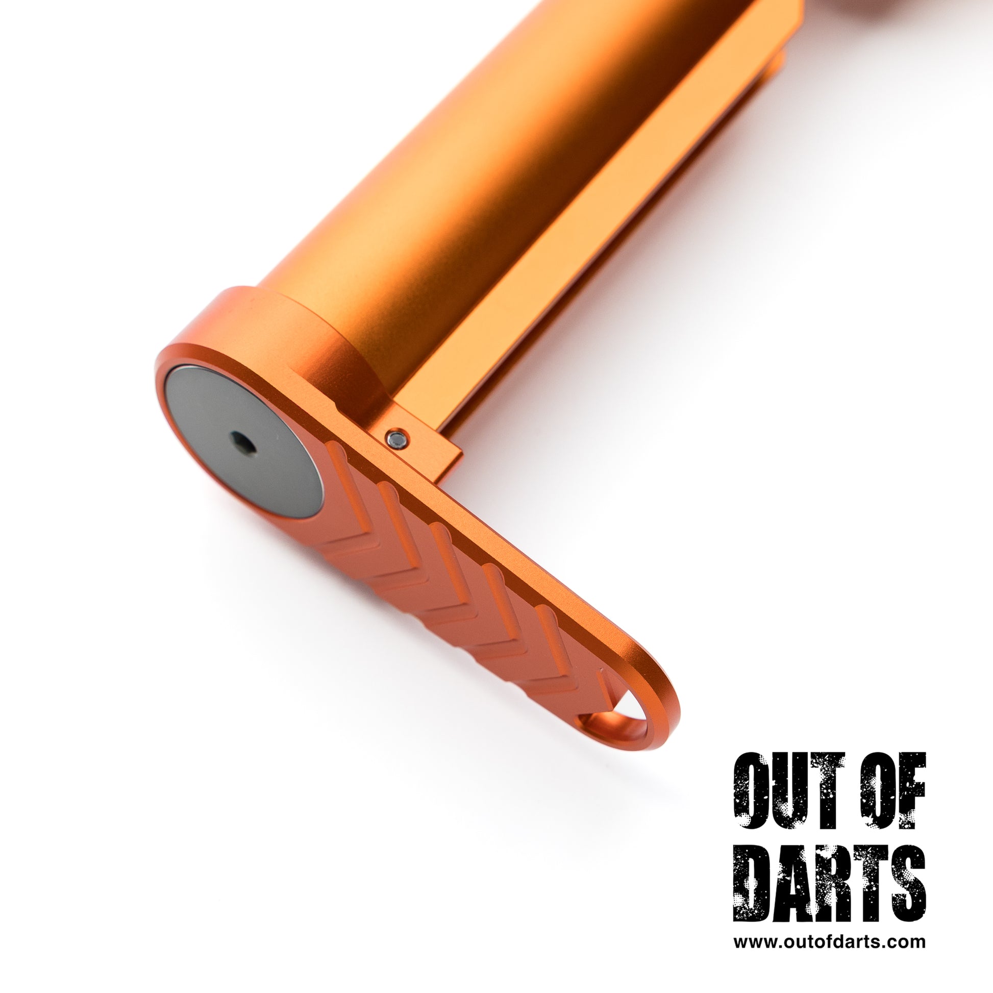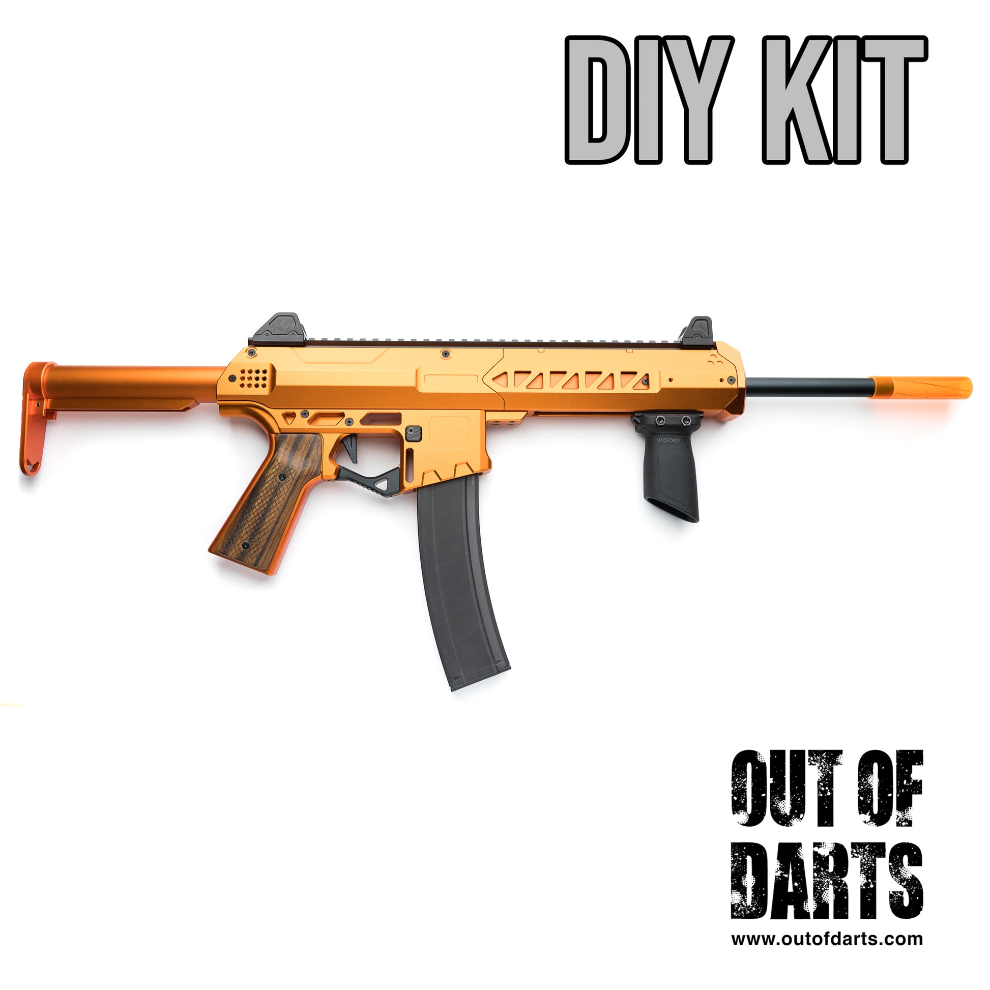 This Full-Metal Edition is a premium DIY Kit with a CNC aluminum shell! It features the same sleek CQB aesthetic as its polymer sibling with an anodized orange all-metal shell finish. This stunning show-stopper blaster is a high-end collector’s item for the foam-flinger who has it all!