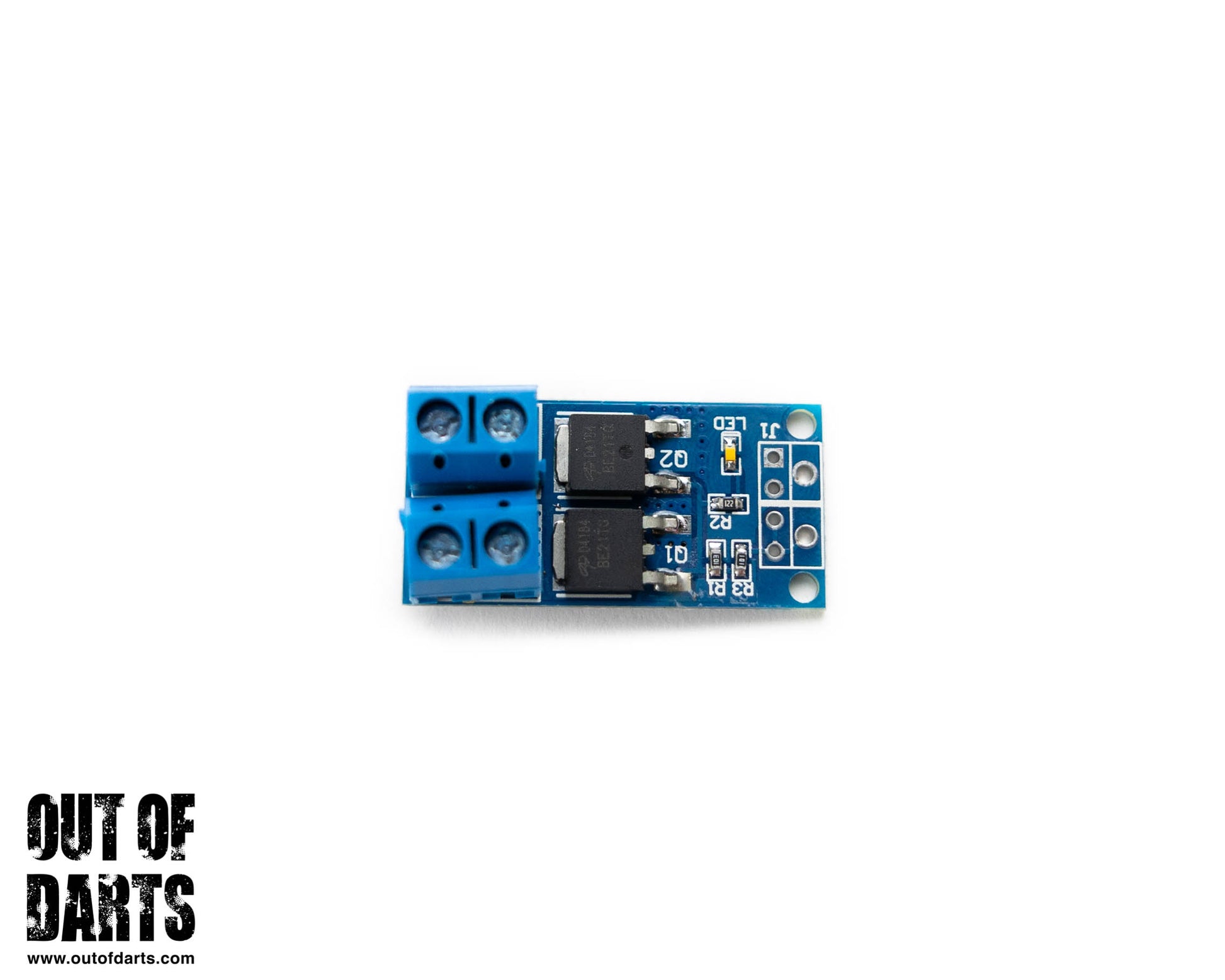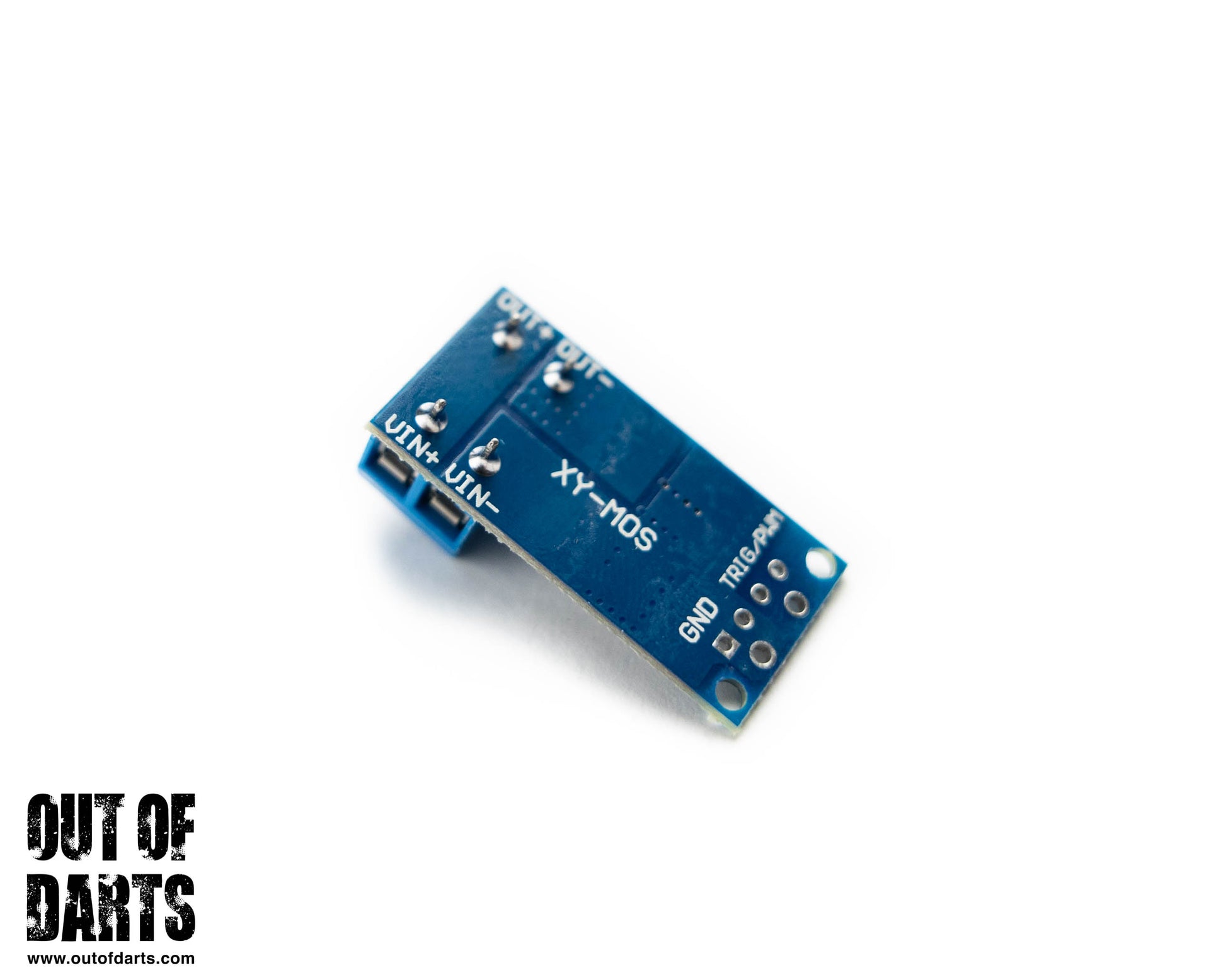 The Versatile Single Stage MOSFET board offers a switch platform for your Nerfing needs! This board is a bit larger than our mini mosfet board but is our only MOSFET that can be used with a PWM signal reliably and is compatible with any pair of standard flywheel motors we offer.