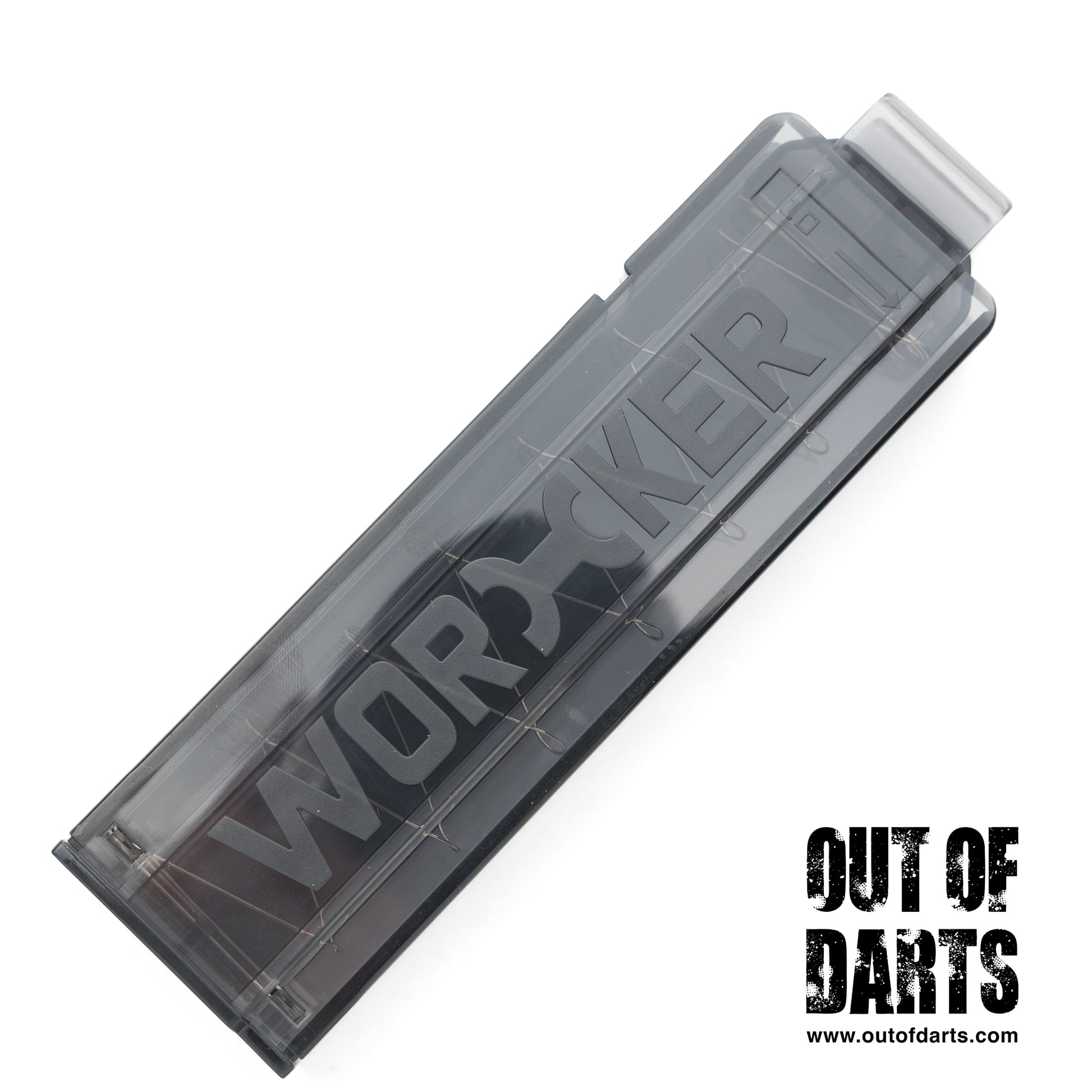 Due to the Worker logo on the side, this mag may be a tight fit in some magwells. Full-length blasters require an appropriate adapter; the link is below.