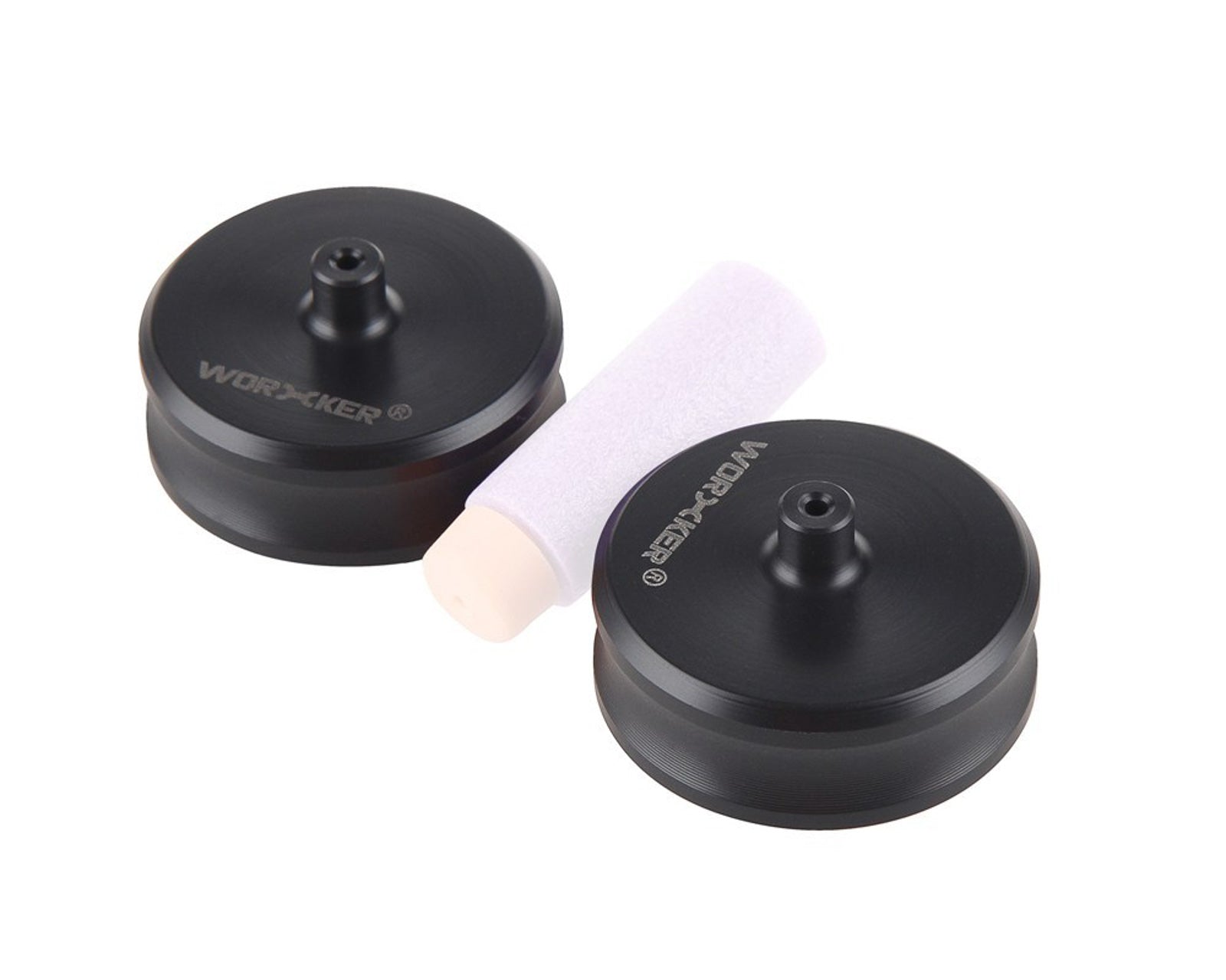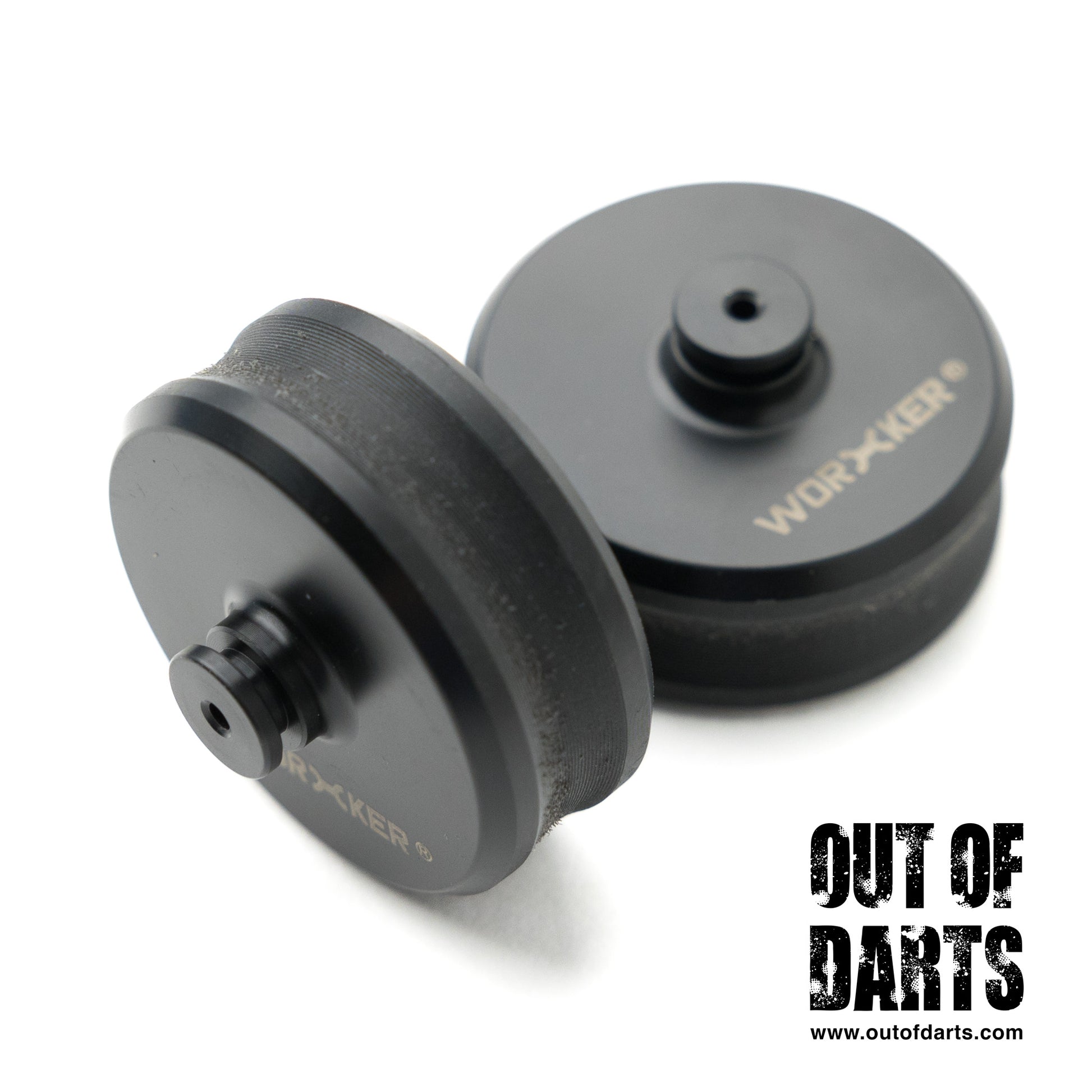 Worker Smooth Flywheels are full-size flywheels designed for Worker's 42.5mm Flat Flywheel Cages for the Stryfe and Swordfish. Featuring a gentile concavity and a grooved surface, these wheels are built to deliver more consistent performance than previous offerings.