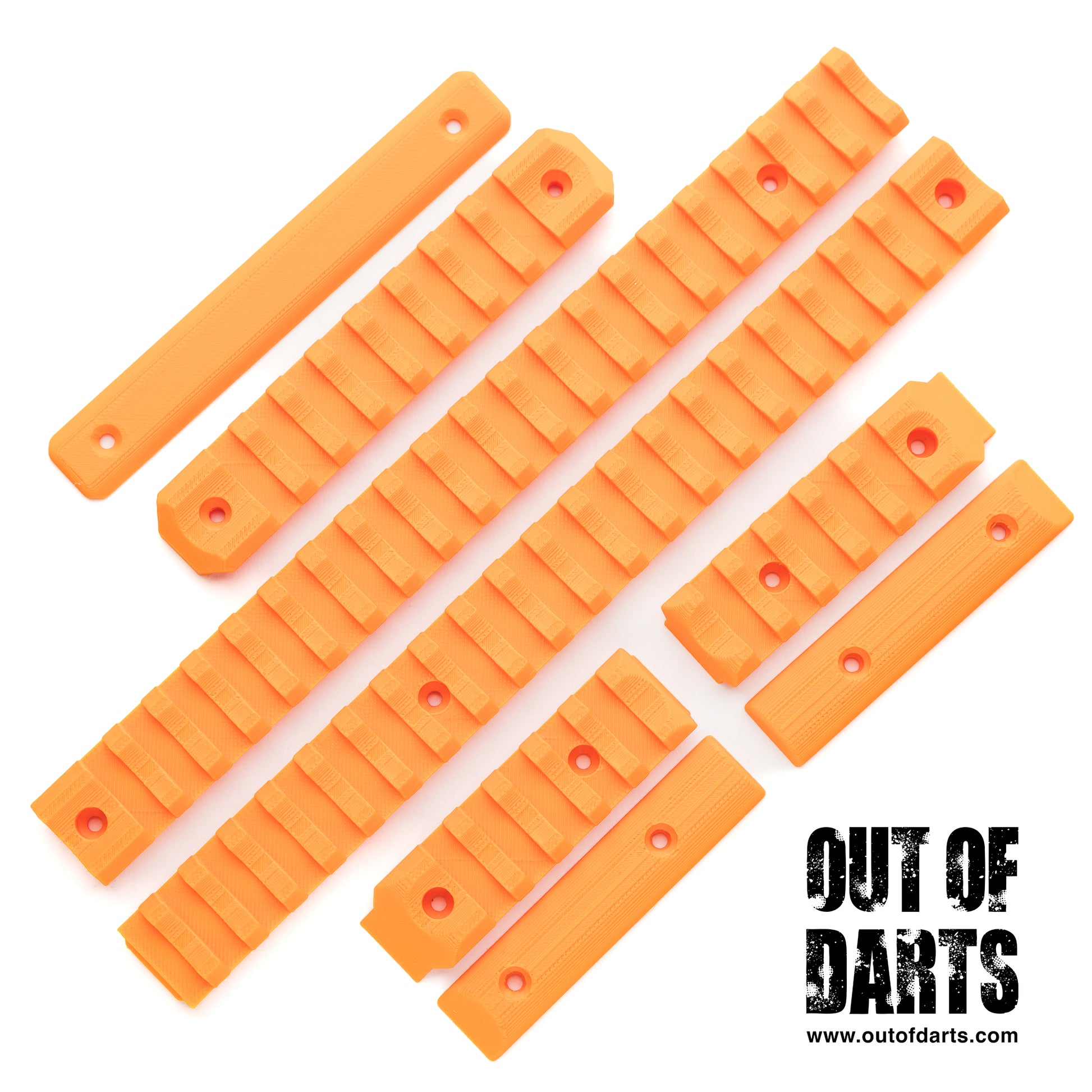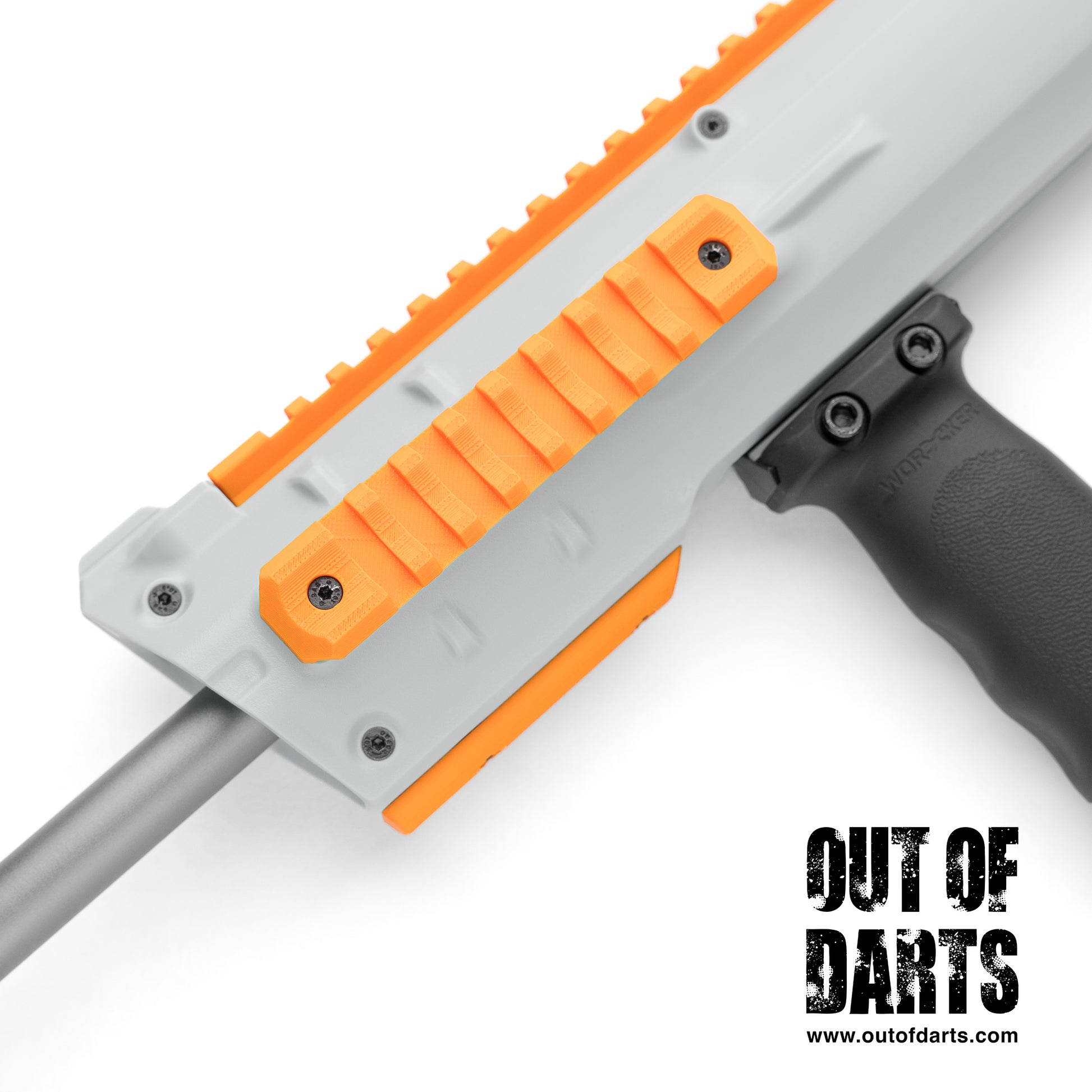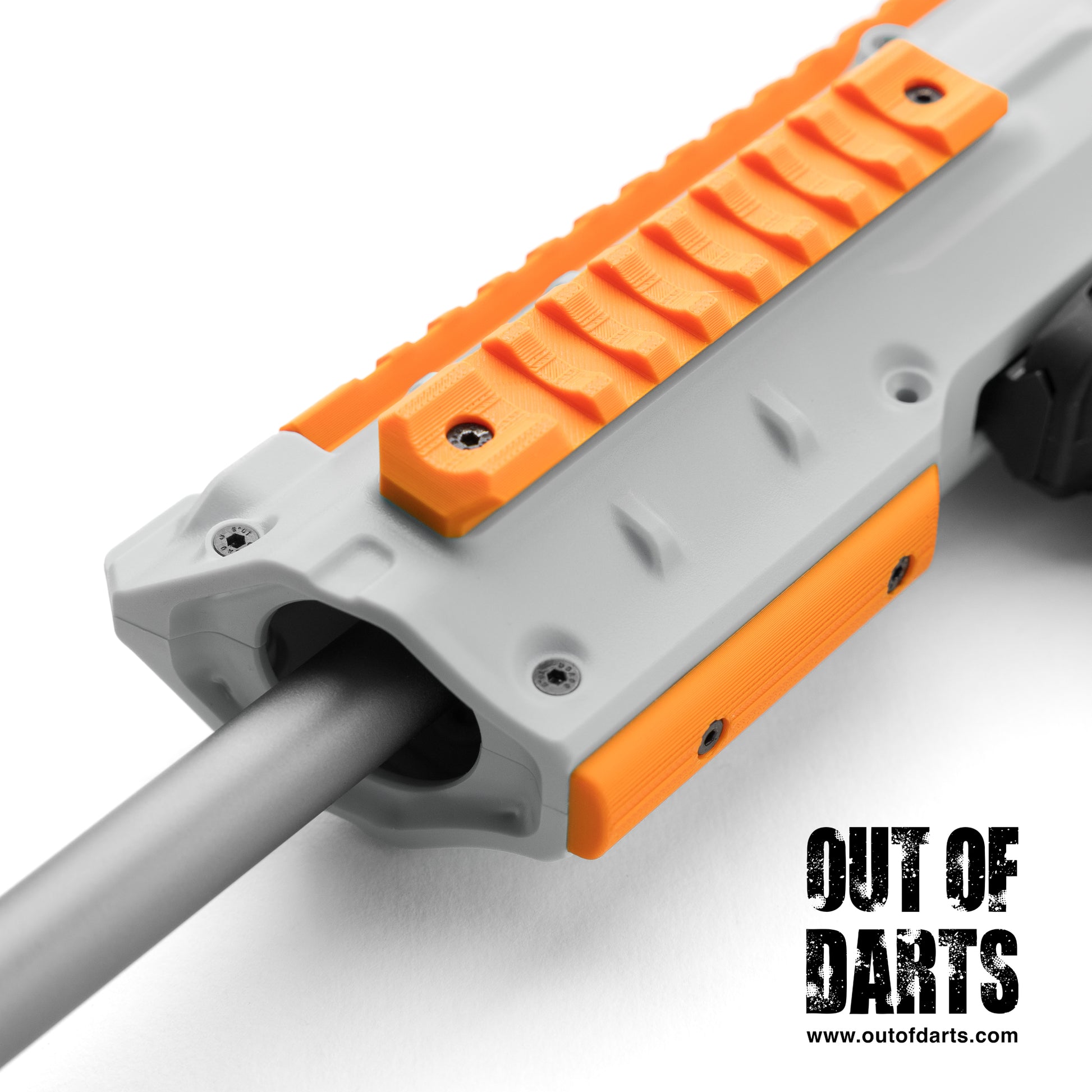 RedCowl's Worker Harrier 3D-Printed Rail Set is a lighter-weight alternative to the heavier aluminum rails included with the Worker Harrier. The split top rail makes spring swaps easier by reducing the number of screws required to access the plunger. Additionally, replace the side and bottom rails with custom colorful accessory rails -- or use the rail delete plates for a sleeker look and feel.