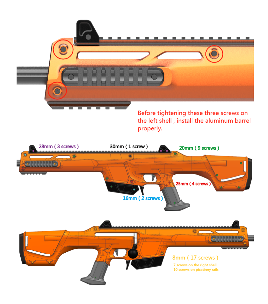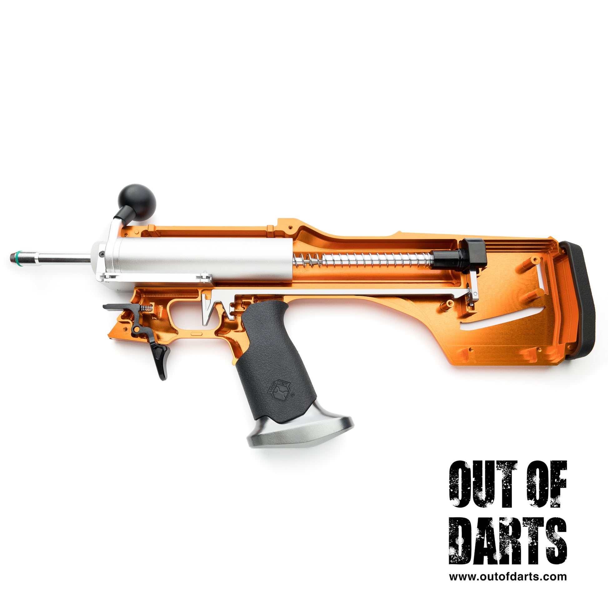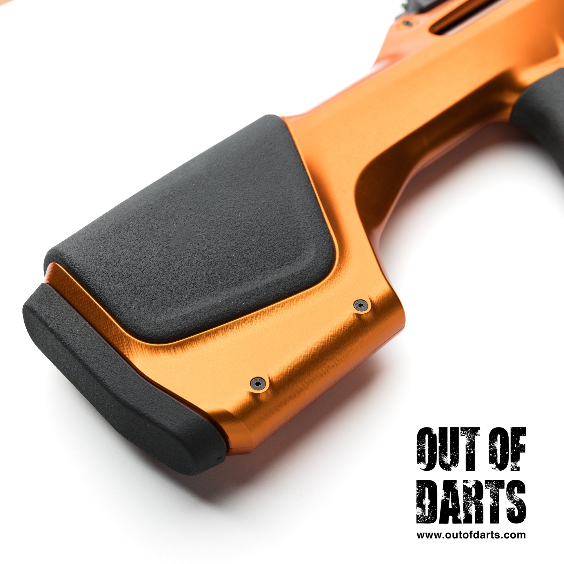 This Full-Metal Edition is a premium DIY Kit with a CNC aluminum shell! It features the same sleek "sniper" aesthetic as its polymer sibling with an anodized orange all-metal shell finish. This stunning show-stopper blaster is a high-end collectors' item for the foam-flinger who has it all!
