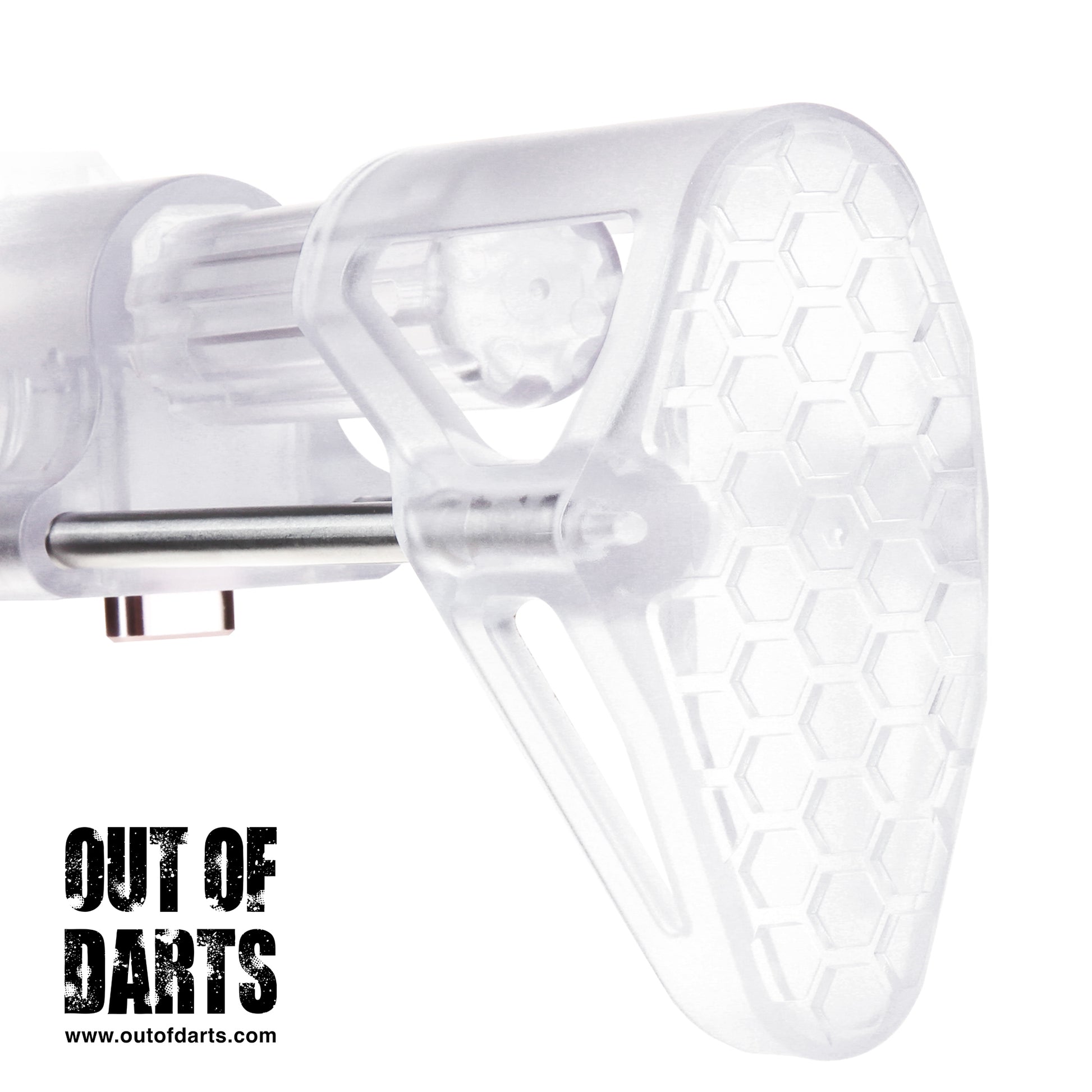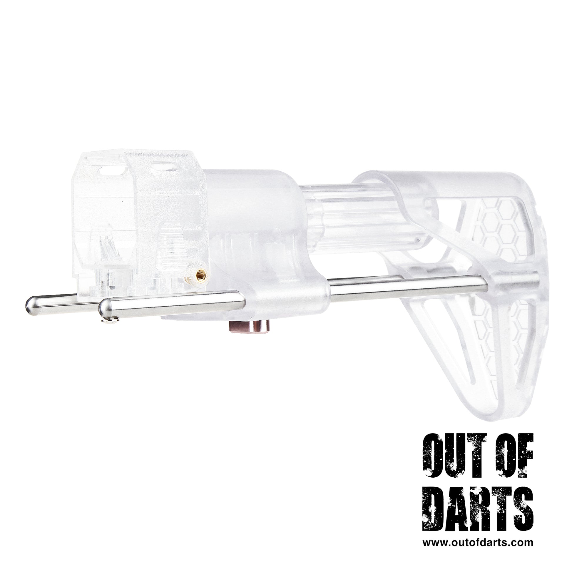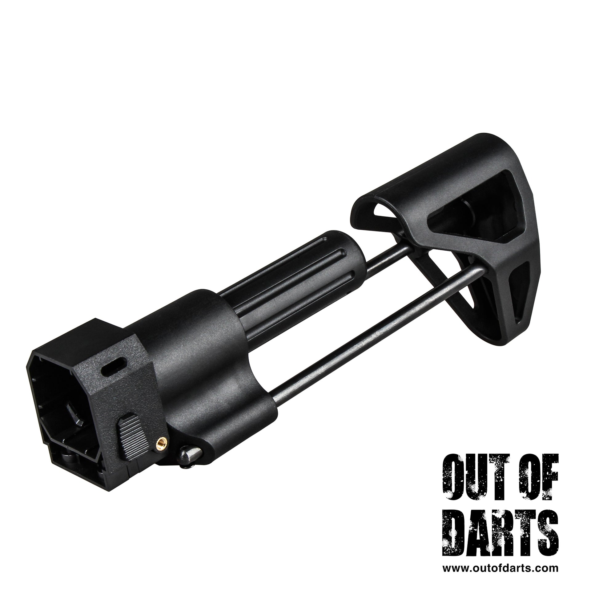 The Worker Simple Nerf Extension Stock is adjustable and compatible with most N-Strike-style stock points. This is the perfect customizable stock option for many blasters, featuring super-solid stainless steel bars, an oversized button release, and ambidextrous threaded sling points. Part of this stock is also used in Talon Claw 4 and SBL adjustable stock designs. Available in three color options!