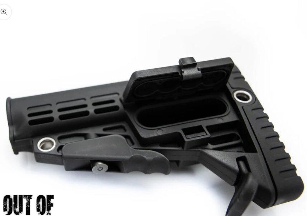 The Worker Premium Buffer Tube Stock offers an eye-catching matte finish. This stock has a solid construction with little-to-no flex in the build. It features a sling point, a Picatinny rail, and a small compartment for O-ring storage. It can be used on any blaster with a buffer tube or N-Strike blaster using the Worker Stock Attachment adapter.